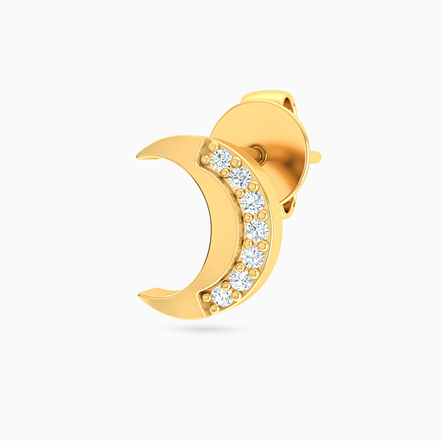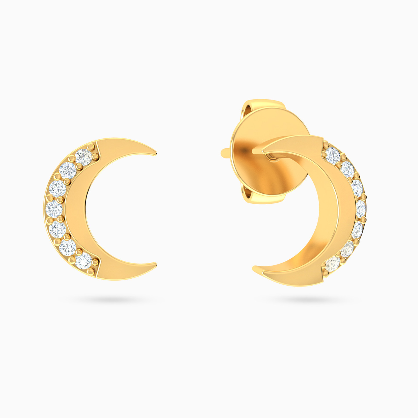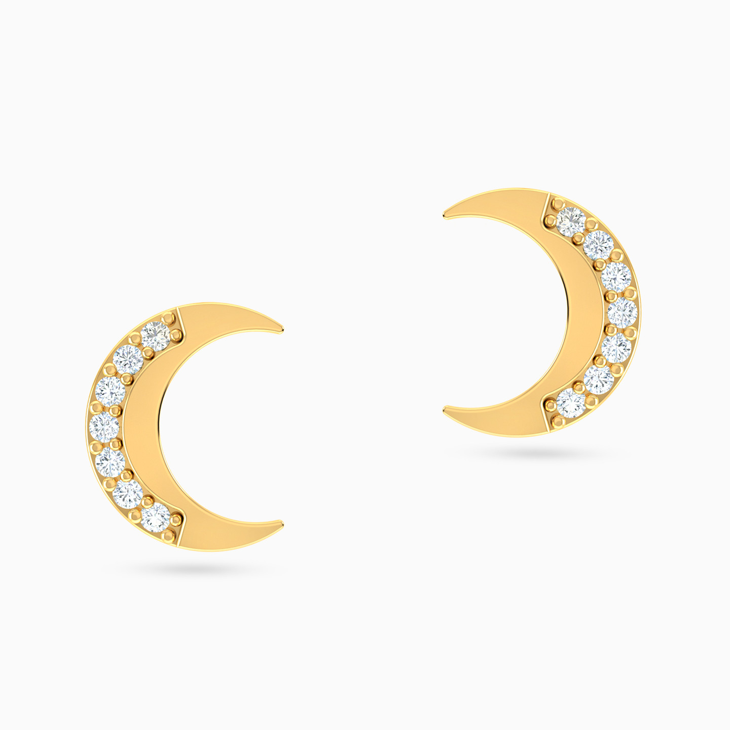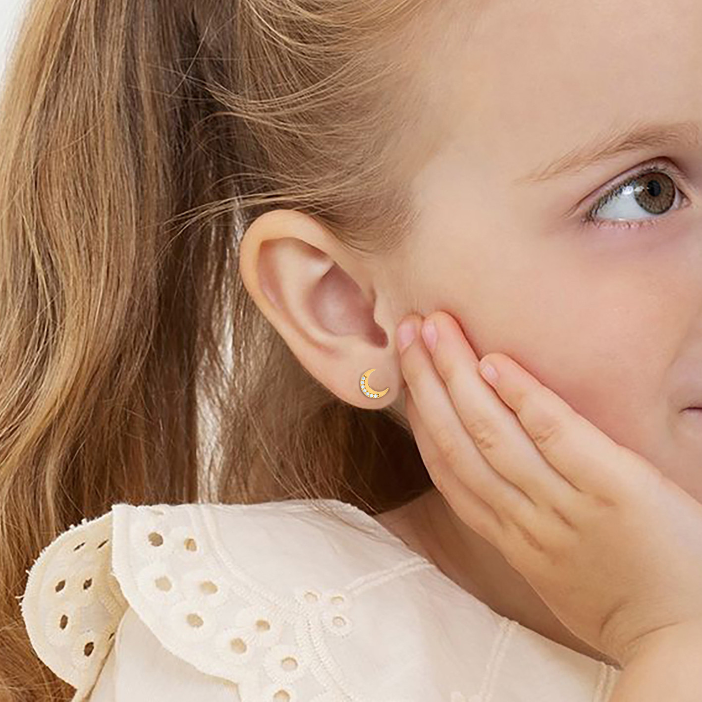 أقراط صغيرة شكل هلال ذهب عيار 18 قيراط مزينة بأحجار الزركون للأطفال
