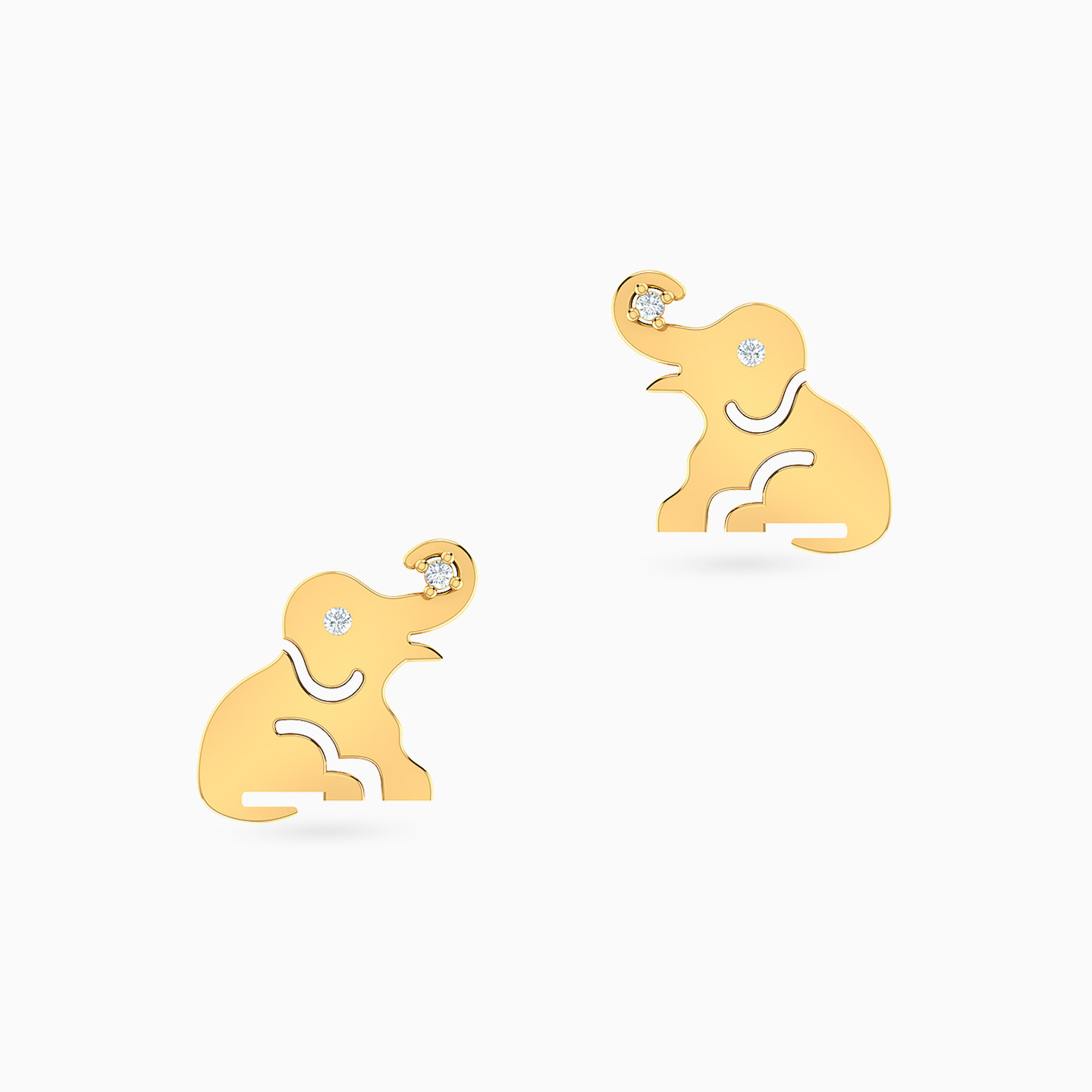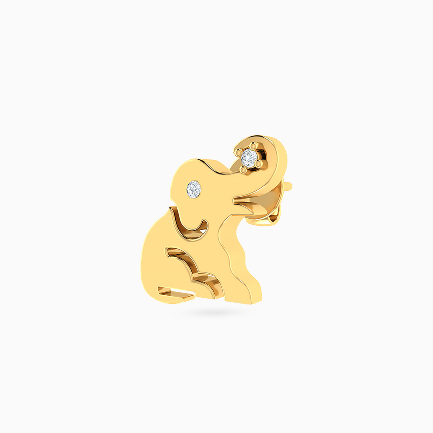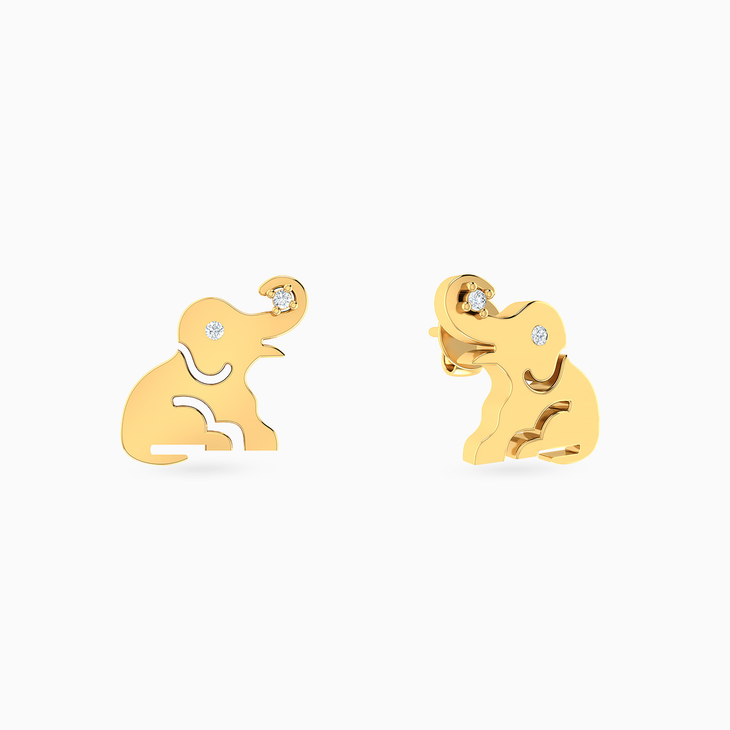 أقراط صغيرة شكل فيل ذهب عيار 18 قيراط مزينة بأحجار الزركون للأطفال