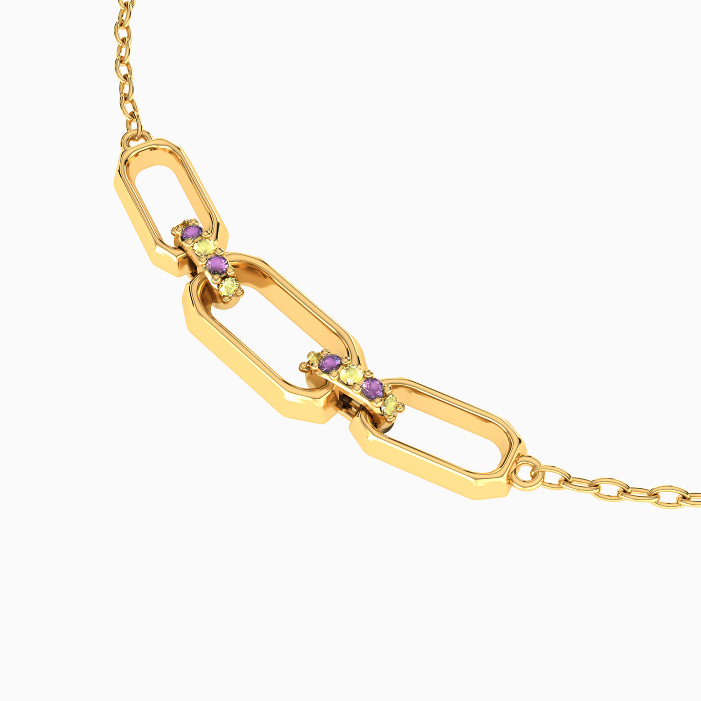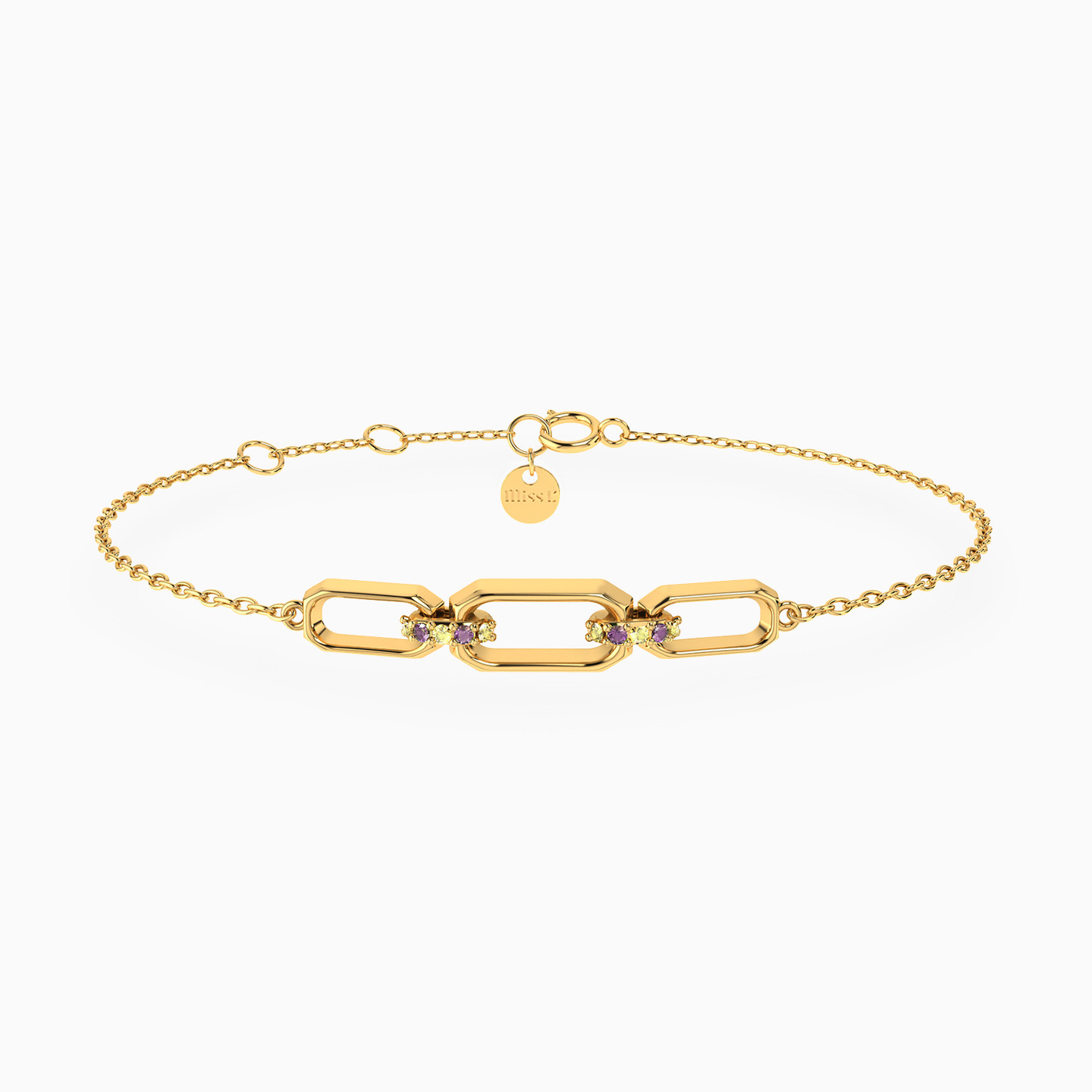 Offer someone special this elegant colored stones chain bracelet from Miss L' and it's sure to become her go-to favorite. Three golden links shine at the center of this beautiful 18-karat yellow gold chain bracelet with pretty colored stone accents shimmering between them. With just the right amount of sparkle and color, this feminine bracelet is the perfect everyday accessory.