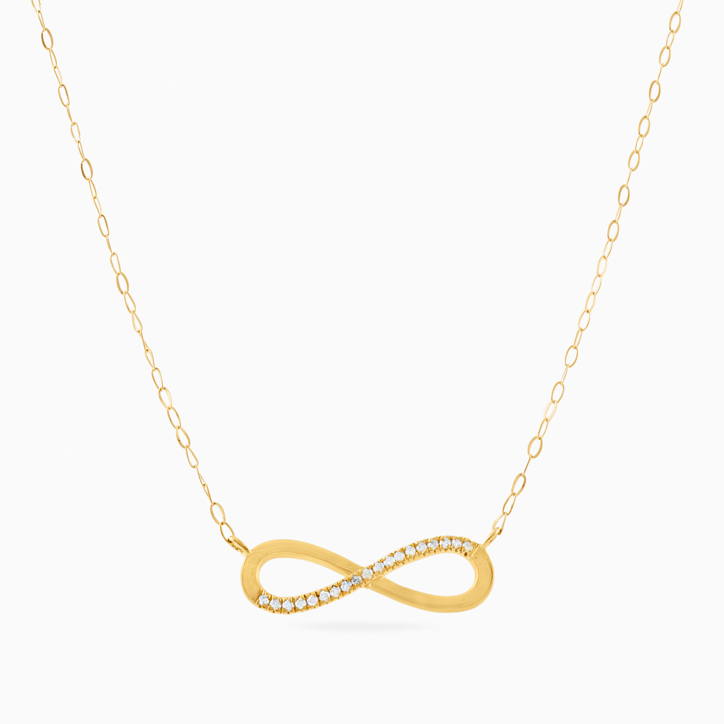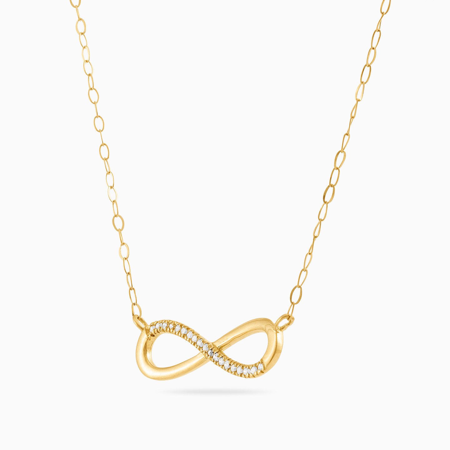 Let that special person in your life know how much they are cherished with this gorgeous pendant necklace from L'azurde Instyle. Crafted in highly polished 18-karat yellow gold, this elegant infinity symbol pendant necklace sparkles with brilliant cut diamond accents and a pink heart stone along the chain. What a fitting tribute to the one you love now and forever.