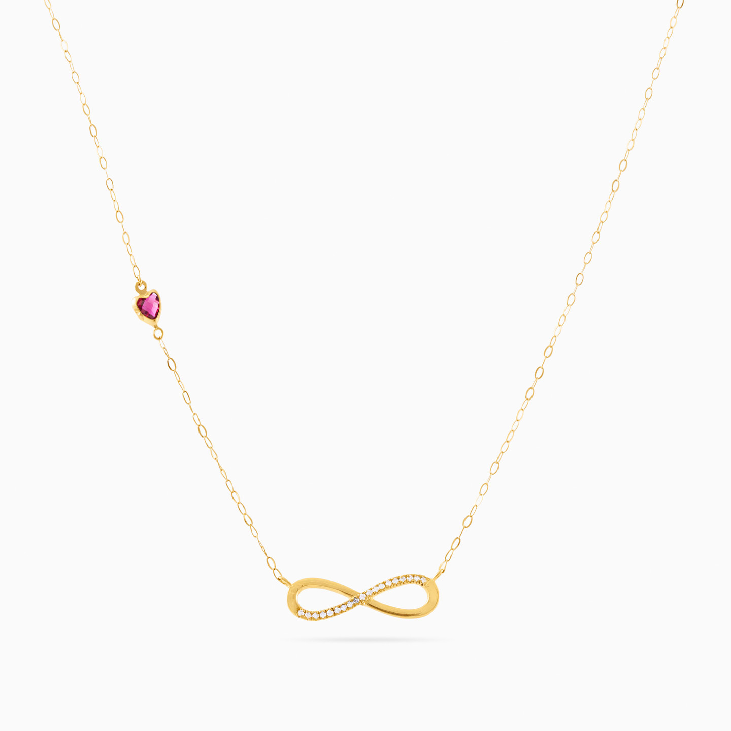 سلسلة ذهب إنفينيتي عيار 18 قيراط مزينة بالألماس وحجر وردي