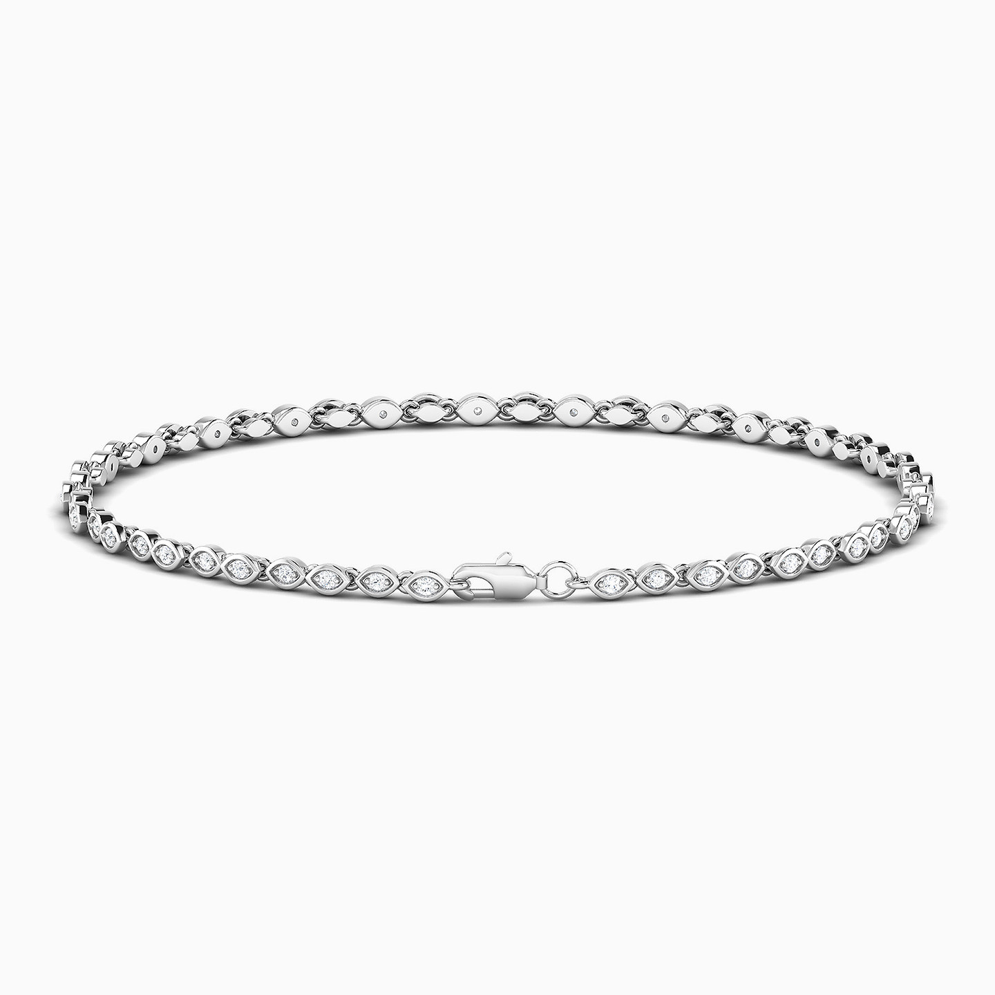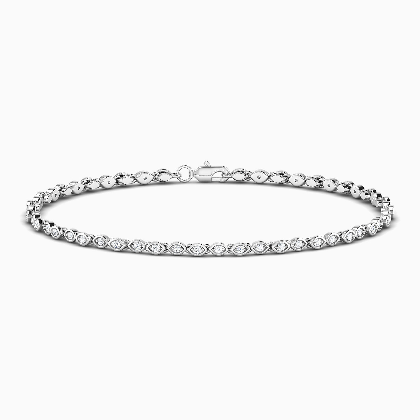 Indulge in the timeless allure of this 18-karat white gold tennis bracelet from L'azurde Diamonds. Featuring round diamonds that glisten with every movement, this classic piece exudes sophistication and pairs seamlessly with both casual and formal ensembles. Its understated elegance is perfect for those who appreciate fine jewelry with a touch of sparkle.