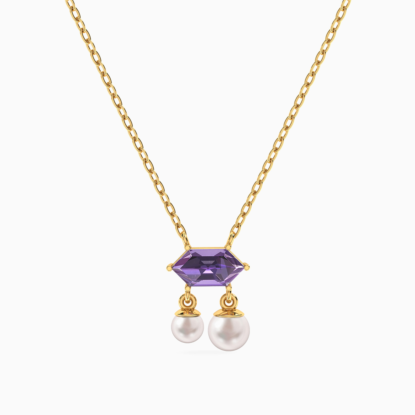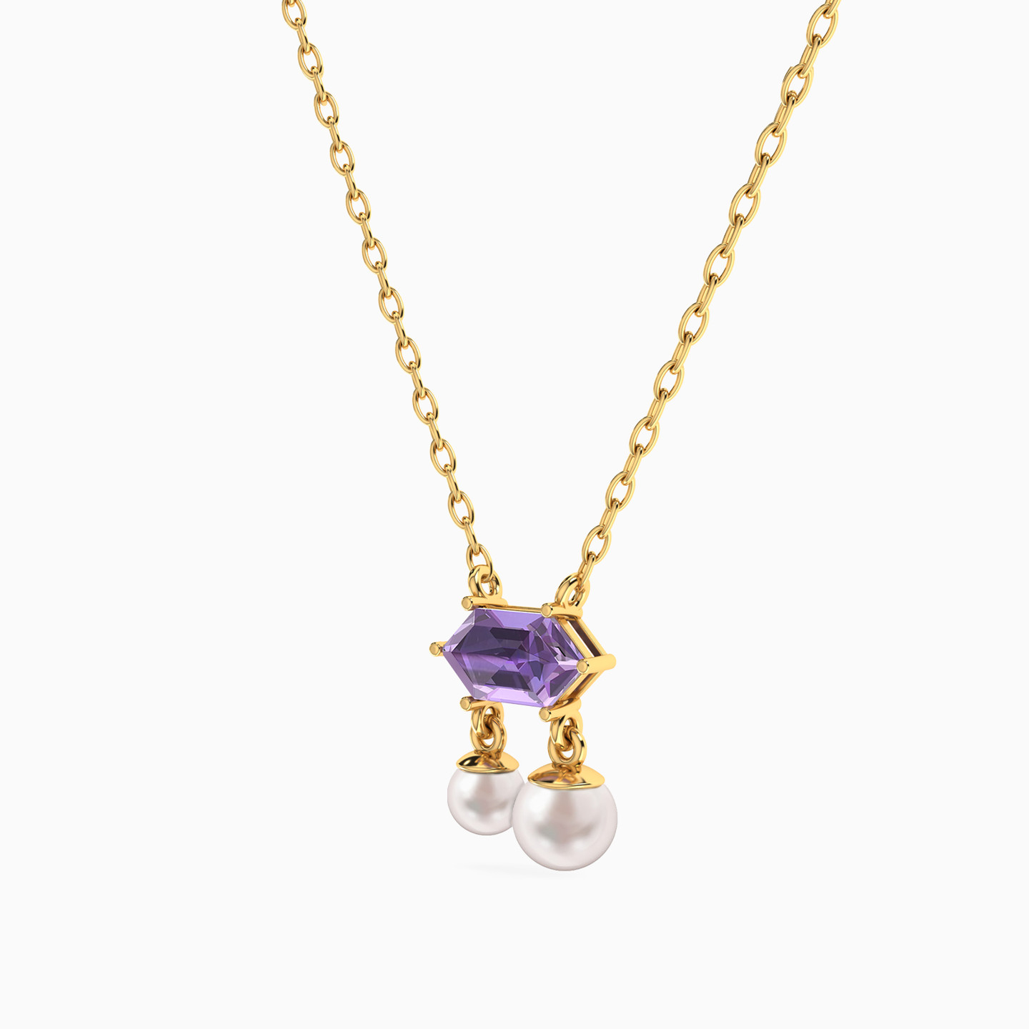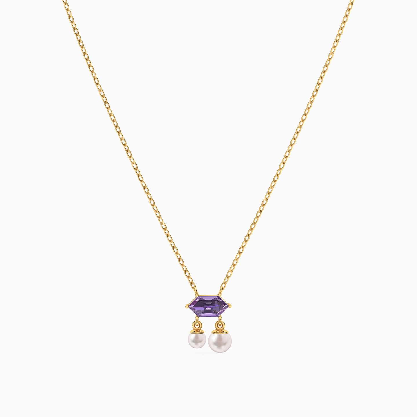 سلسلة ذهب باجيت عيار 18 قيراط مزينة باللؤلؤ وحجر بنفسجي