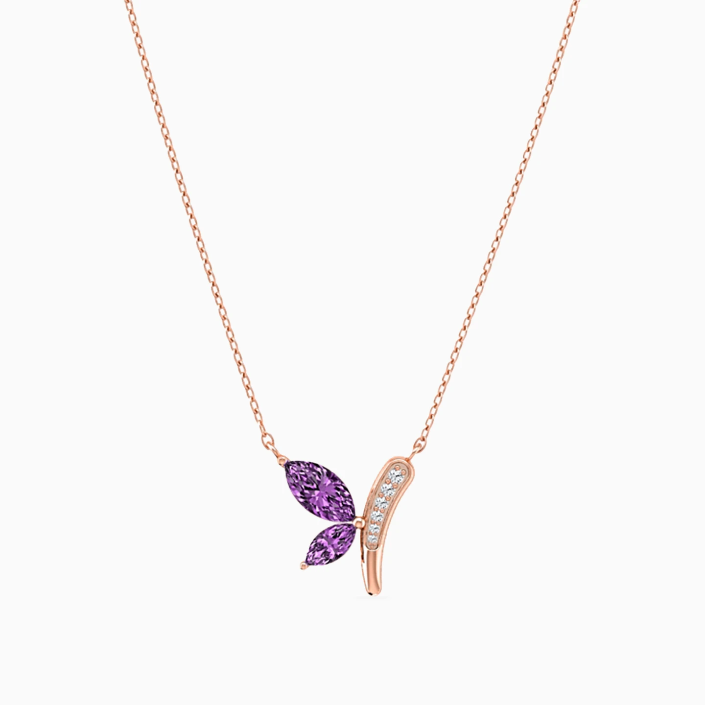 سلسلة ذهب فراشة عيار 18 قيراط مزينة بالألماس وحجر بنفسجي