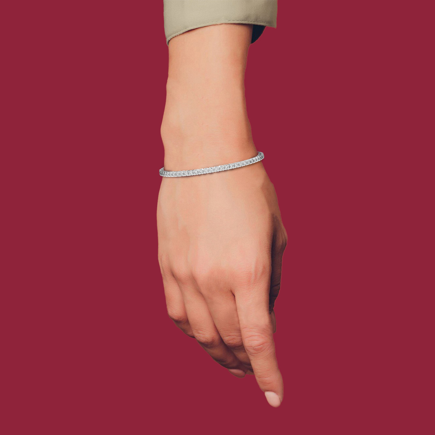 Adorn your wrist with the epitome of luxury and sophistication with this stunning 18-karat white gold tennis bracelet from L'azurde Diamonds. Meticulously crafted, this bracelet features an array of brilliant cut diamonds delicately set on prongs, creating a mesmerizing display of sparkle and brilliance. Whether worn as a standalone statement or layered with other jewelry, this bracelet is sure to captivate and take your style to new heights.