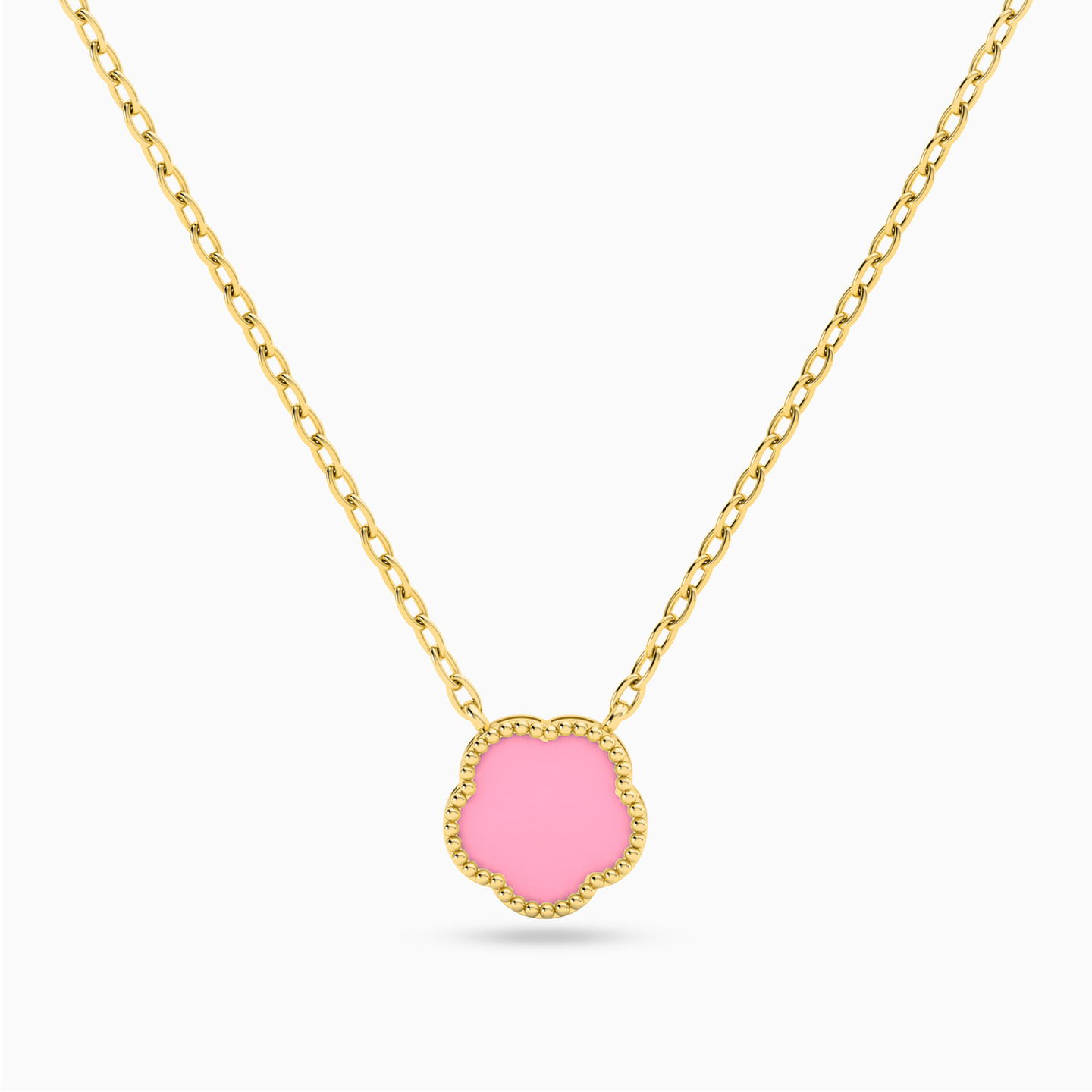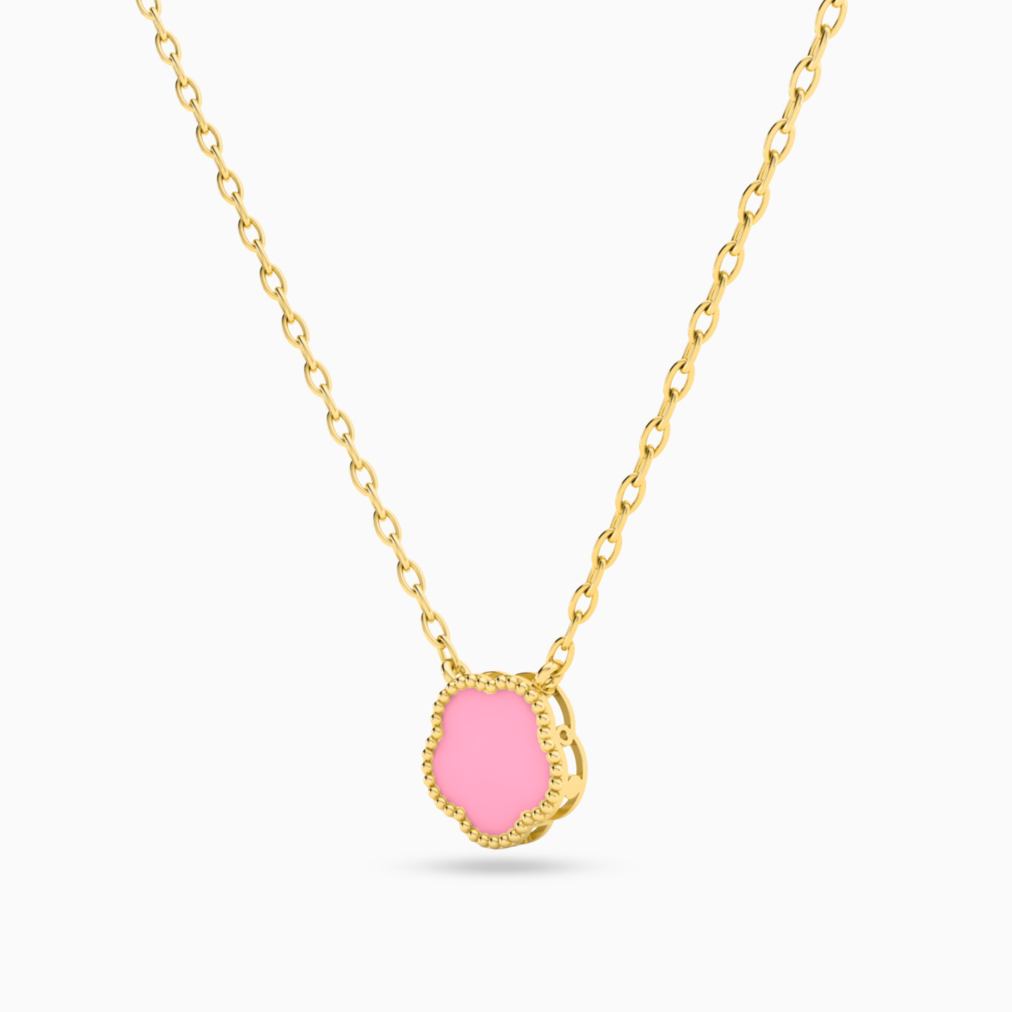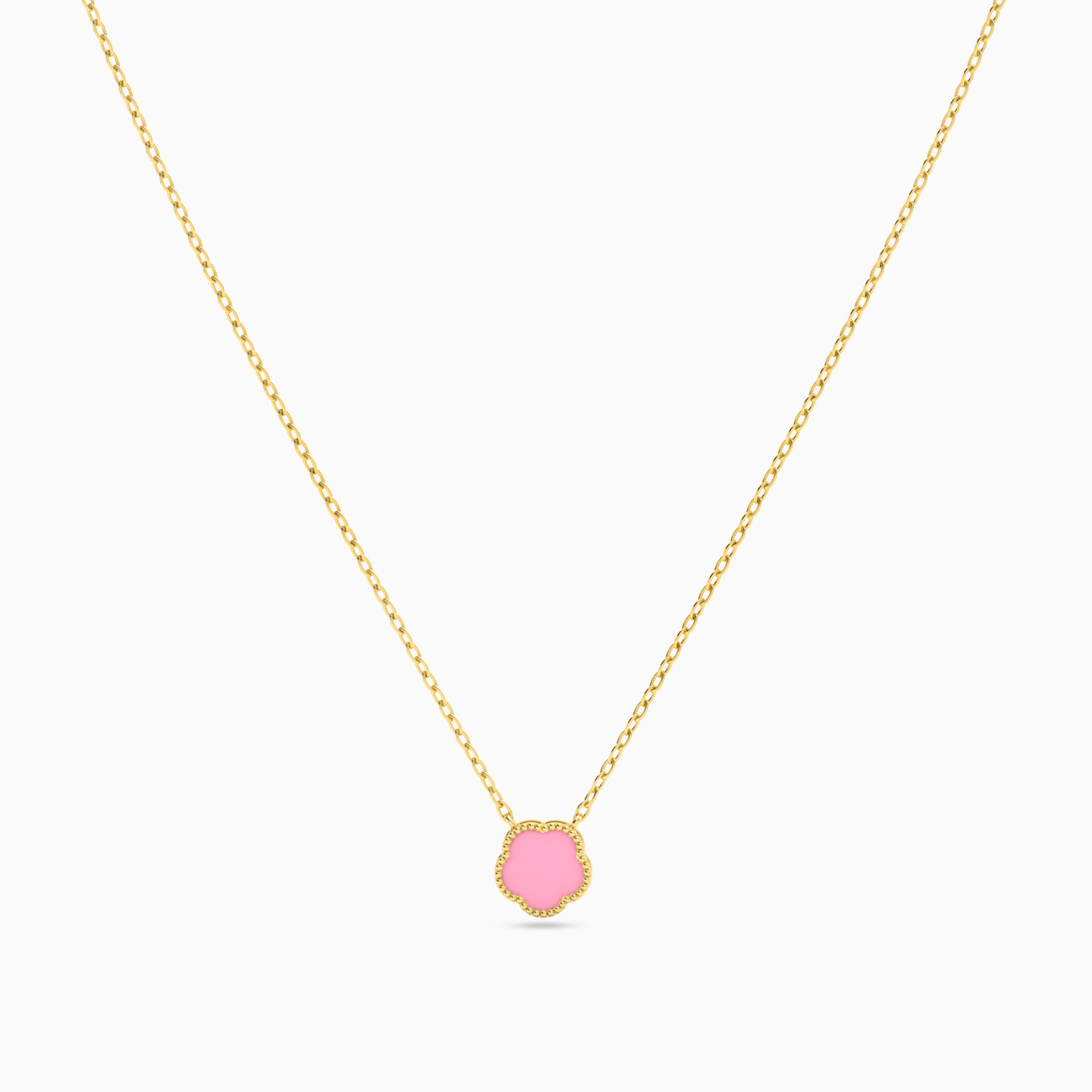 سلسلة ذهب زهرة عيار 18 قيراط مزينة بحجر وردي