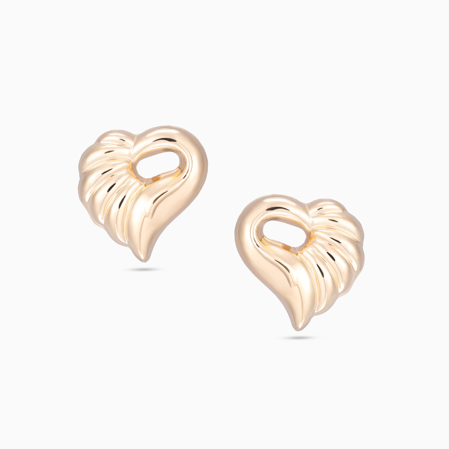 Grace takes shape in the softest curves. These Lazurde Gold stud earrings feature a sculpted freeform heart design, glowing with a polished shine that feels expressive yet effortlessly refined. A meaningful pair for women who cherish subtle statements—an elegant gift that stays close to the heart.