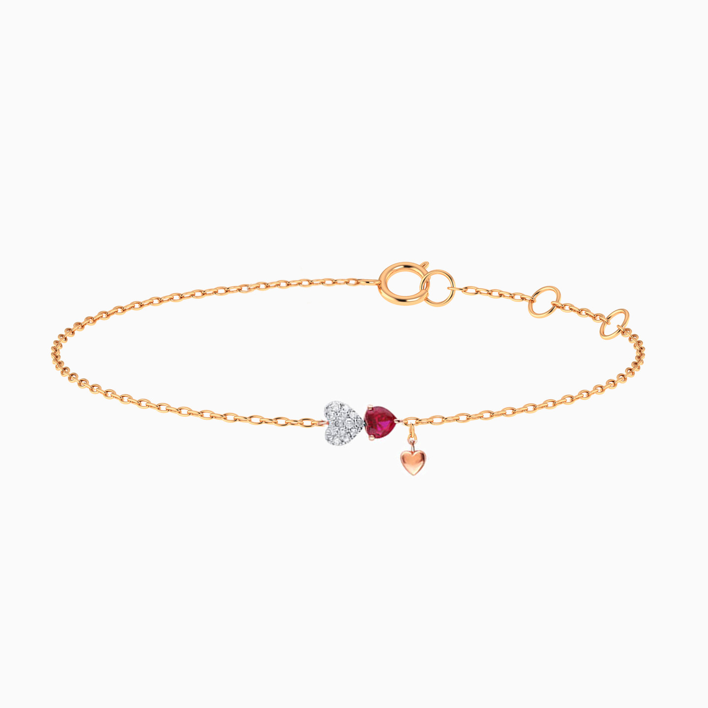 أسورة بسلسلة ذهب قلب عيار 18 قيراط مزينة بالألماس وحجر أحمر