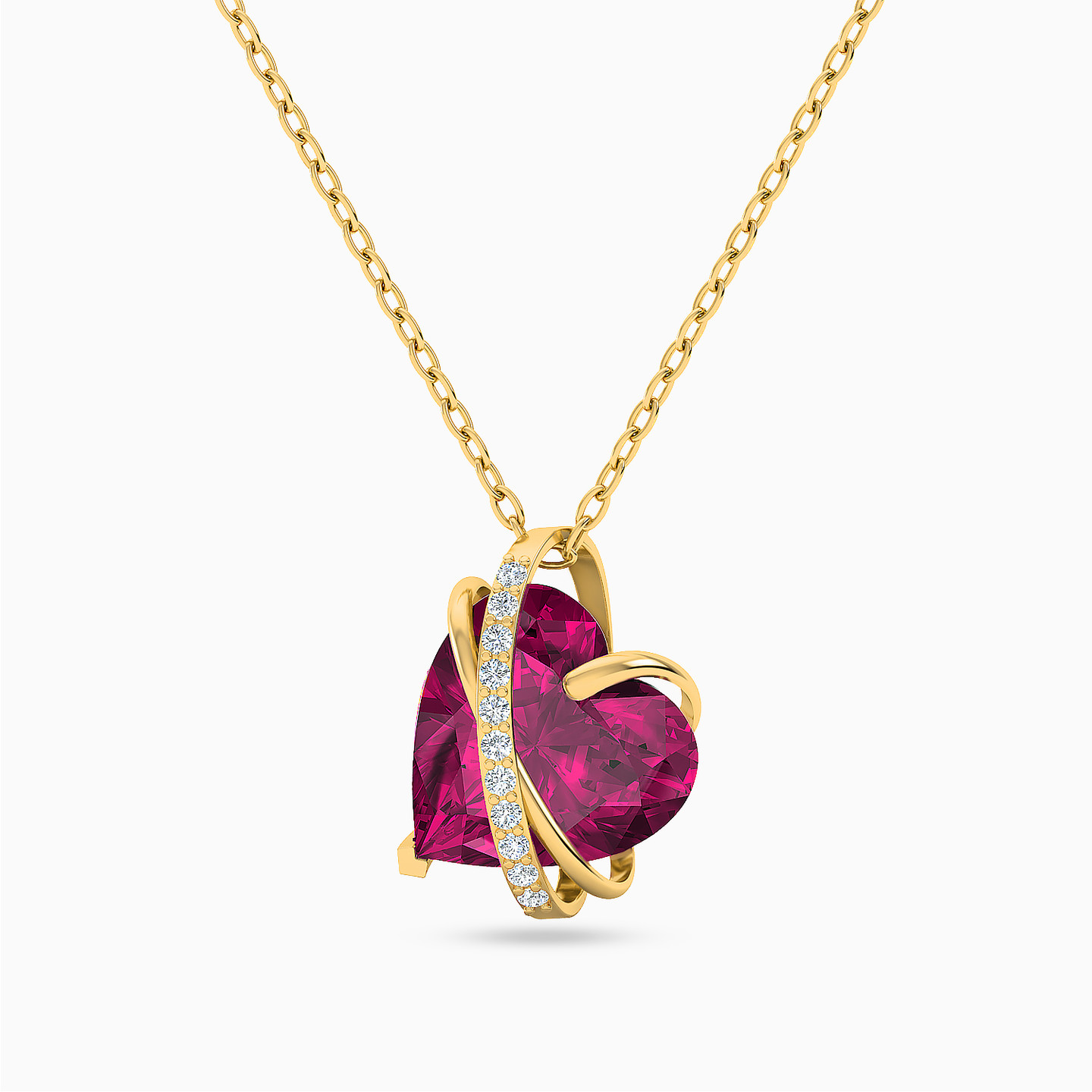 سلسلة ذهب قلب عيار 18 قيراط مزينة بالألماس وحجر وردي