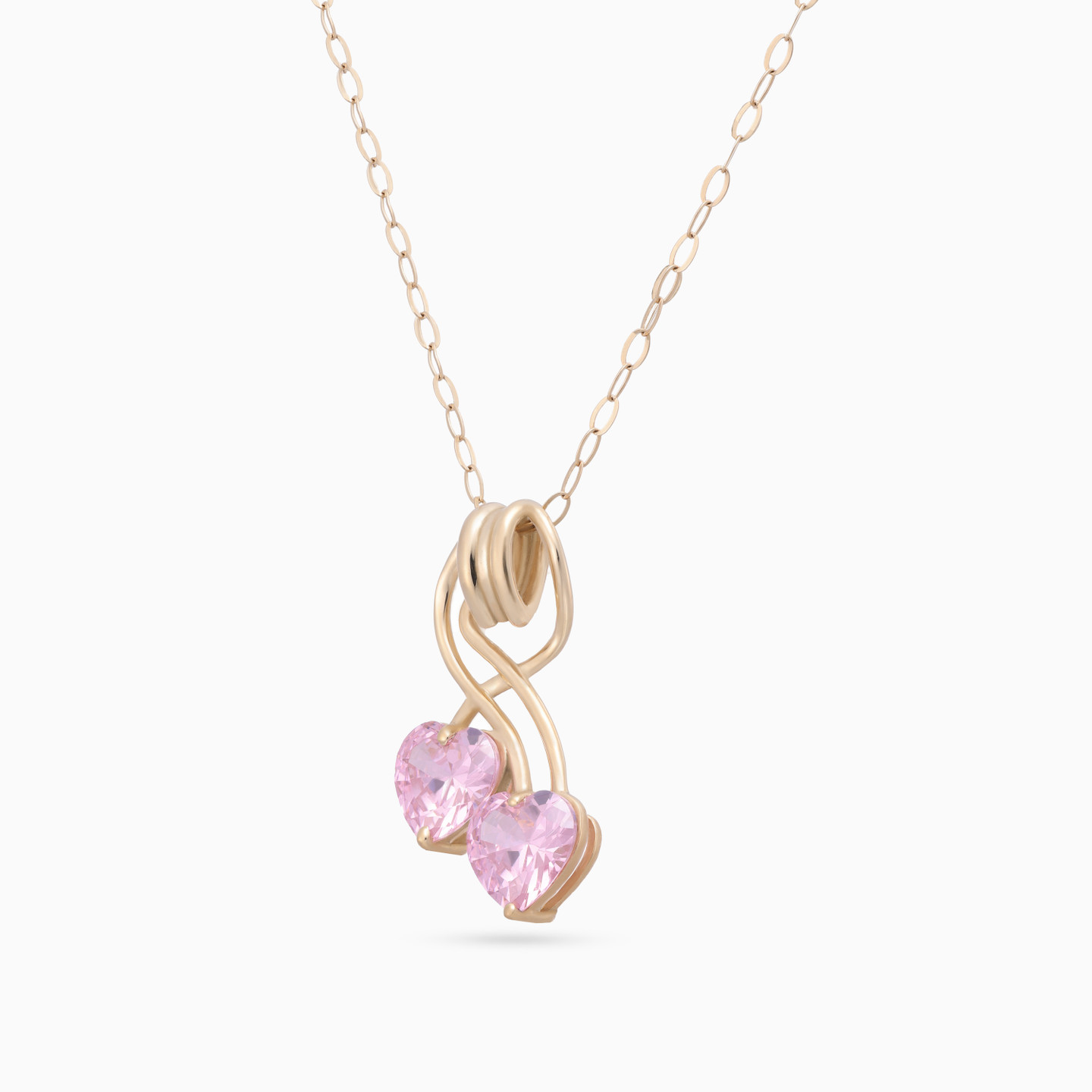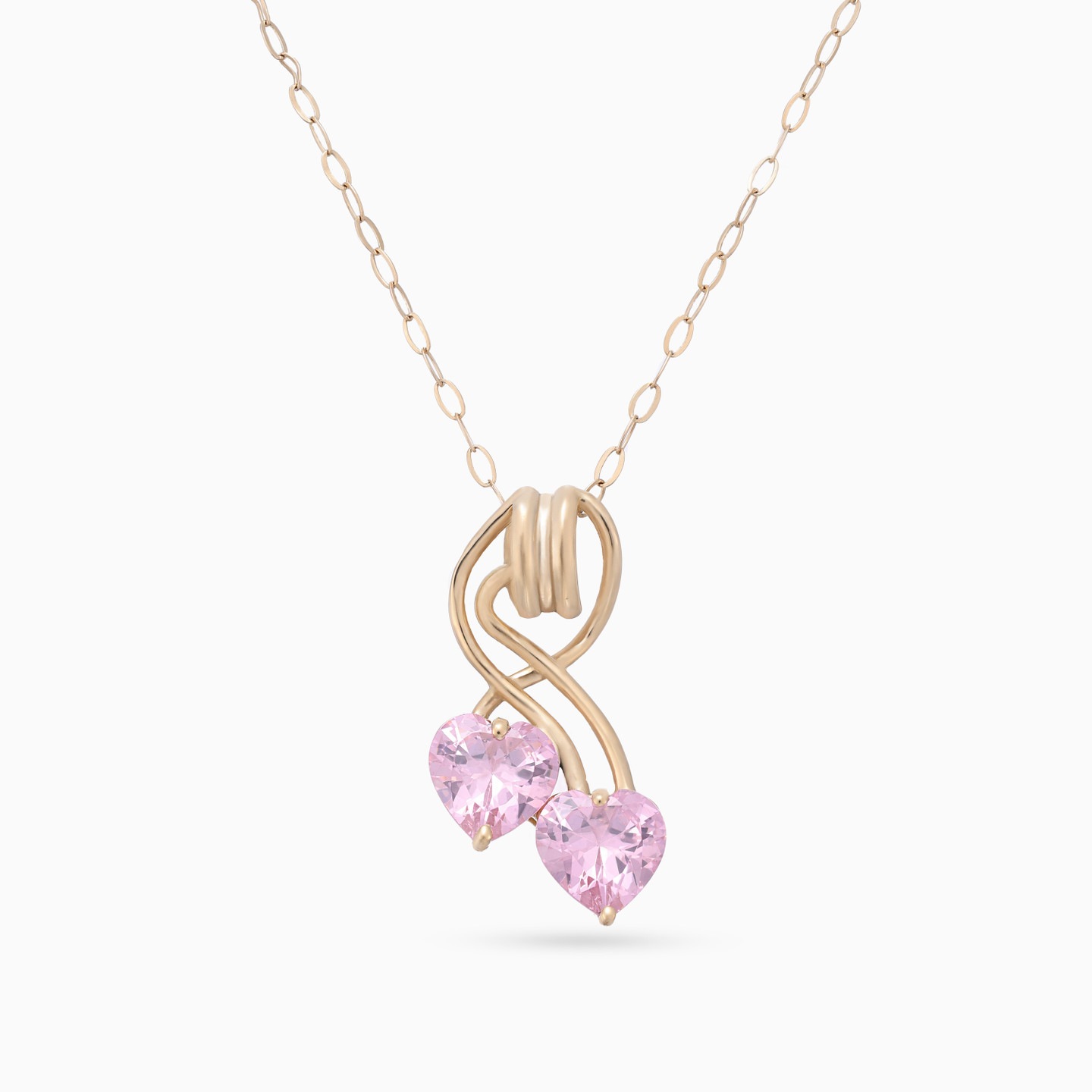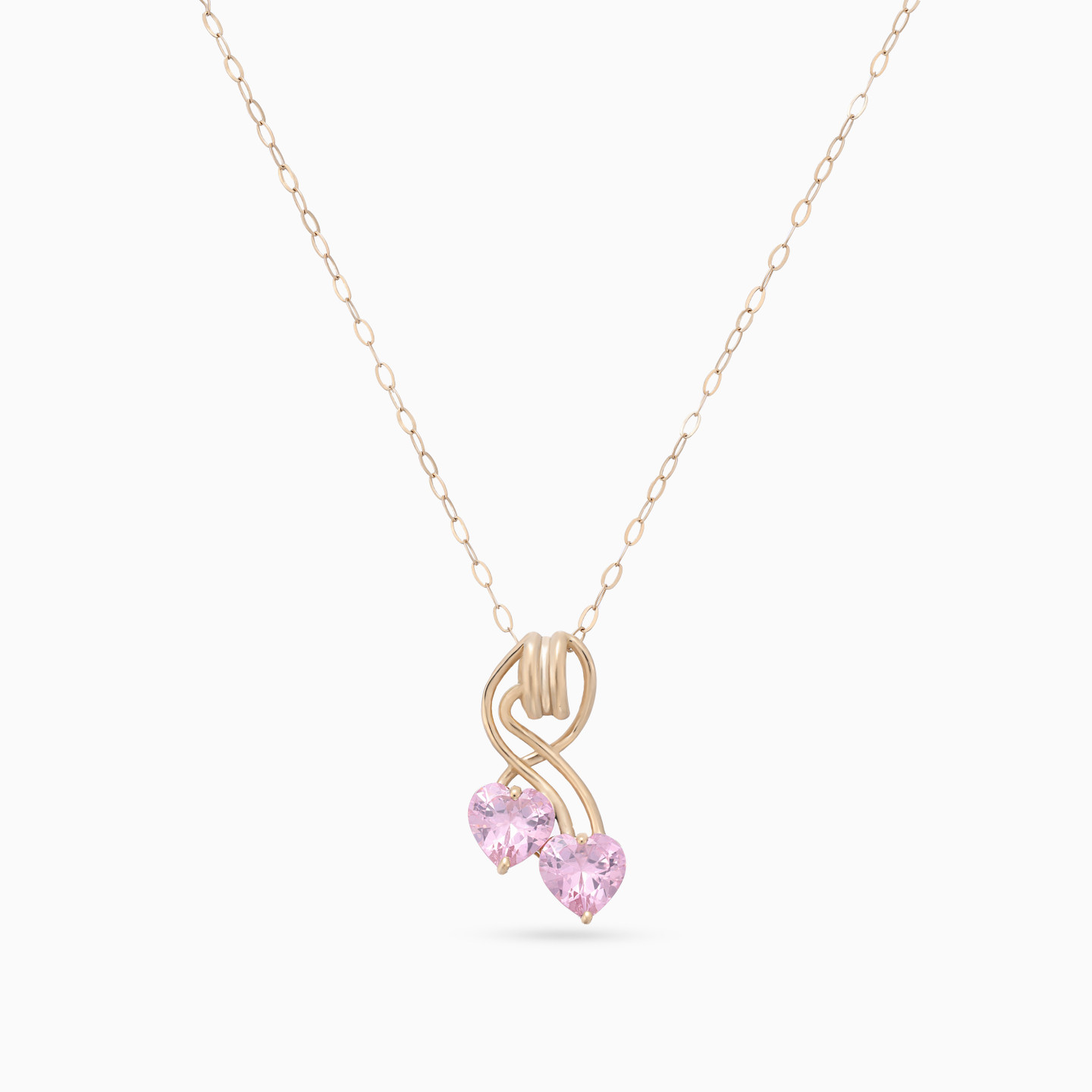 Two hearts, one bond. This delicate Miss L’ necklace features twin pink heart stones linked by a graceful twist of gold. A poetic expression of love, connection, or cherished memories—perfect for gifting someone close to your heart.