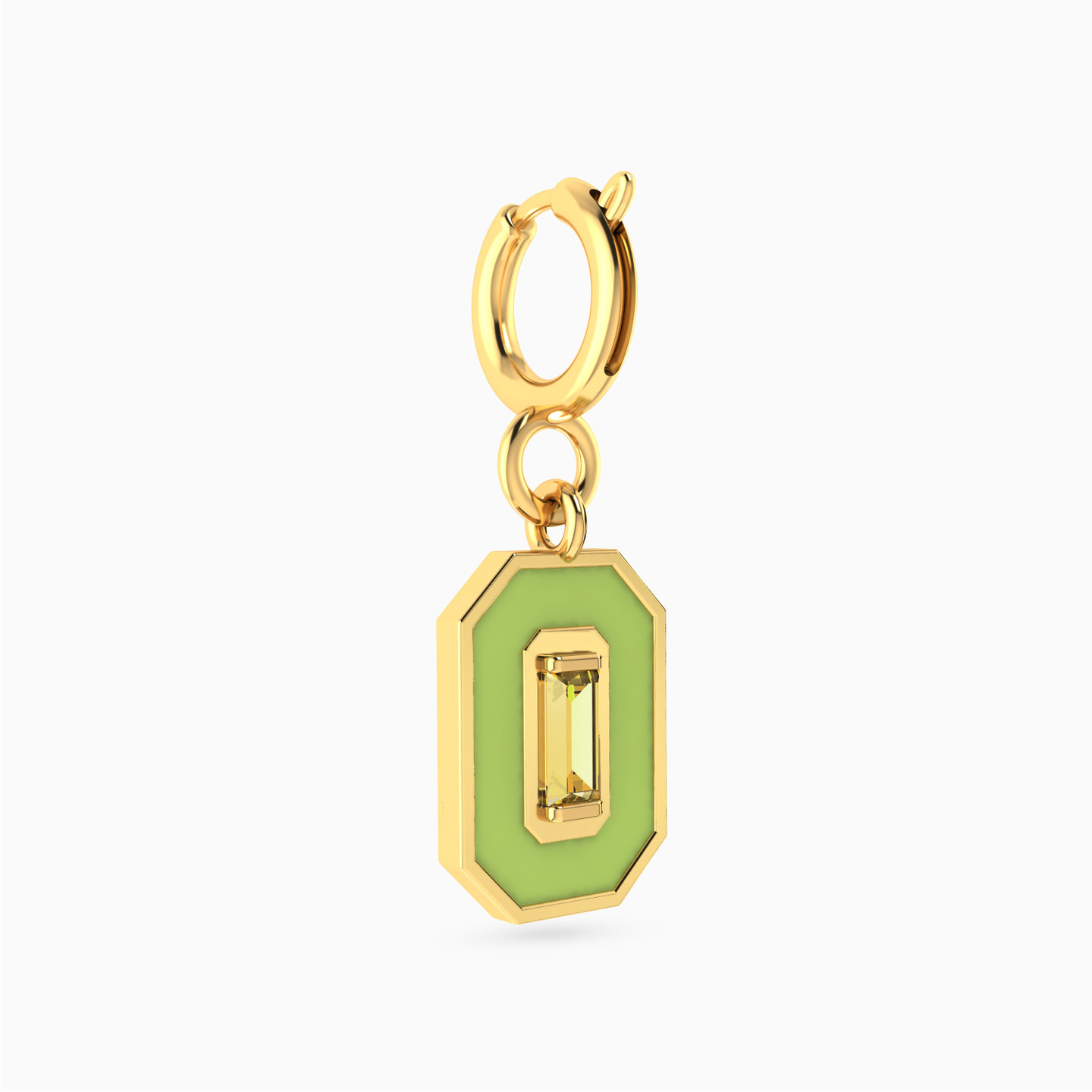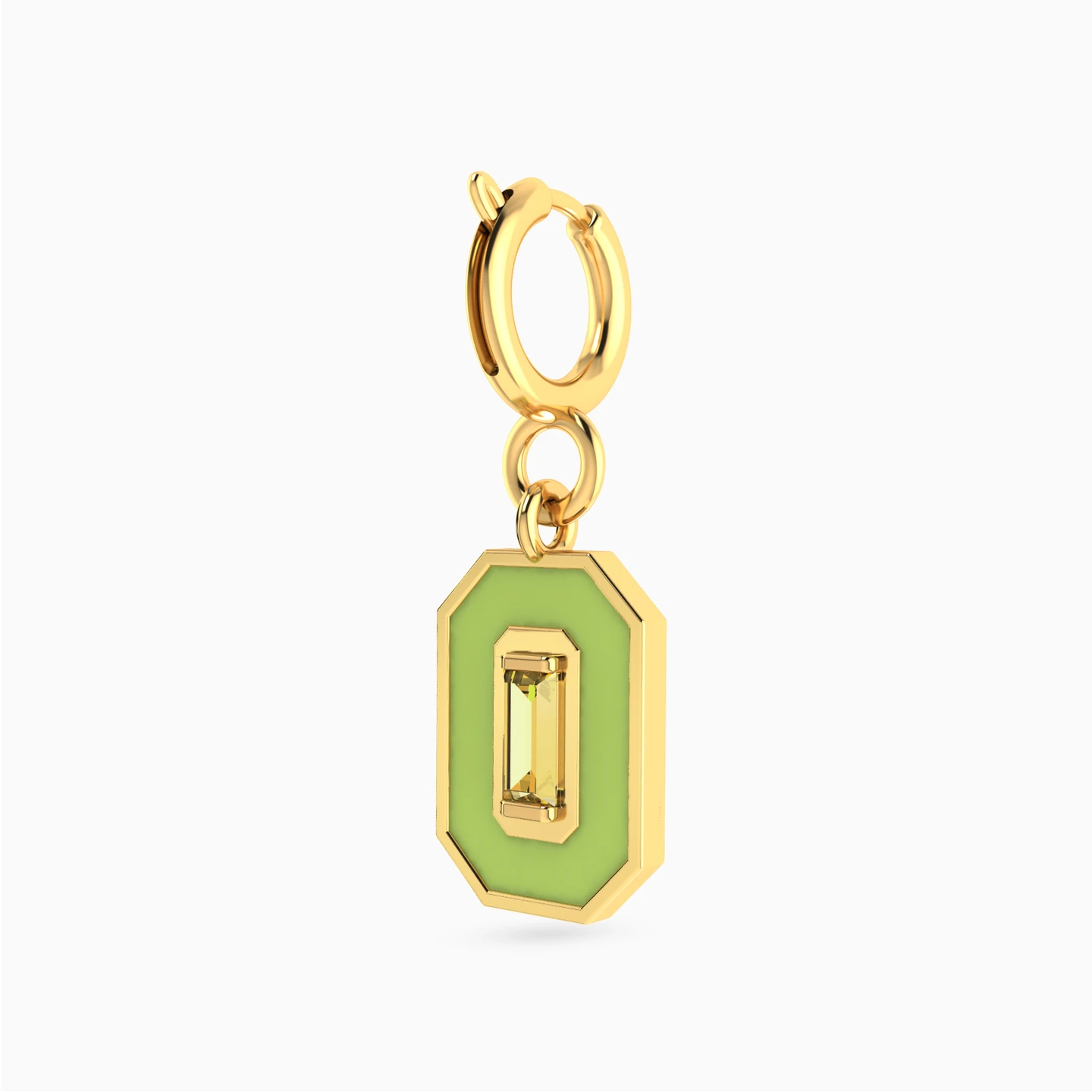 Bold, bright, and full of life. This Miss L’ charm pairs a vivid green enamel frame with a sparkling yellow stone at the center—like sunlight glowing through spring leaves. A fresh and radiant piece to energize your style.