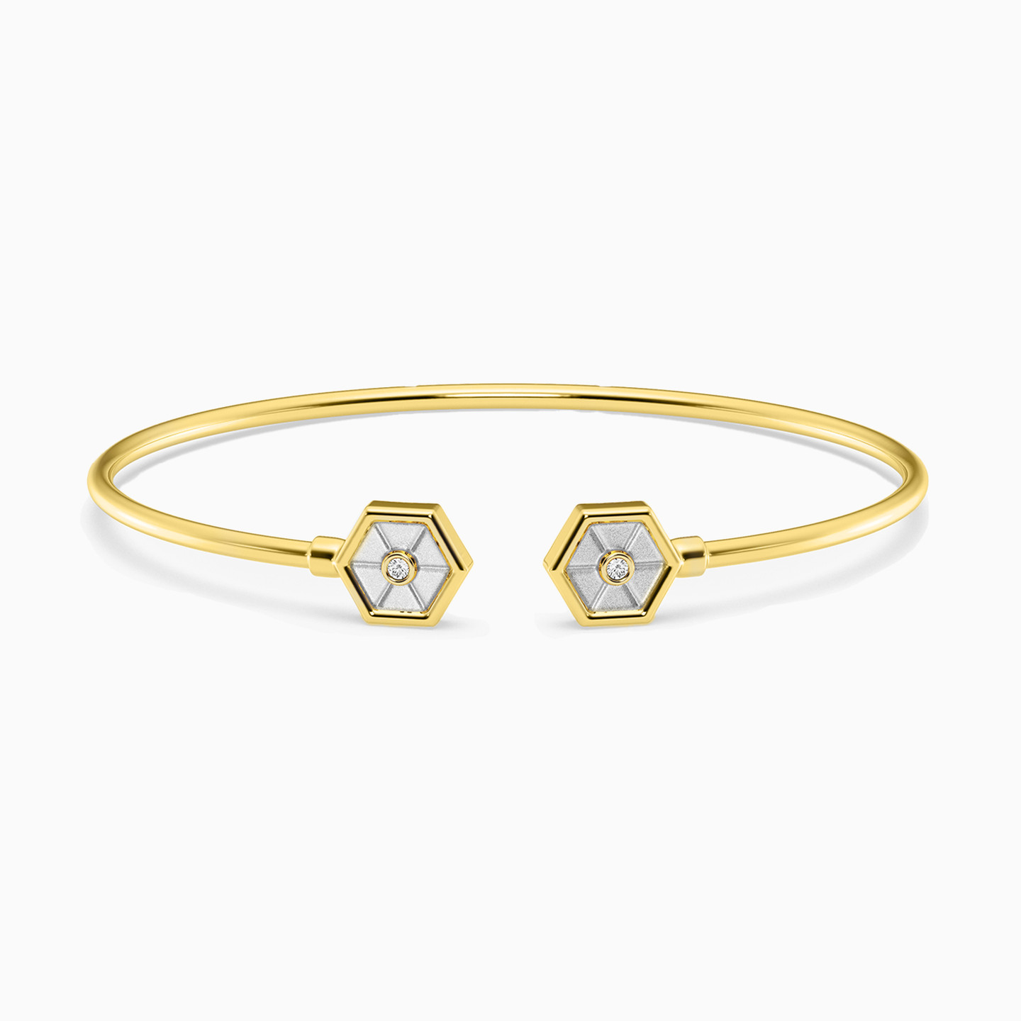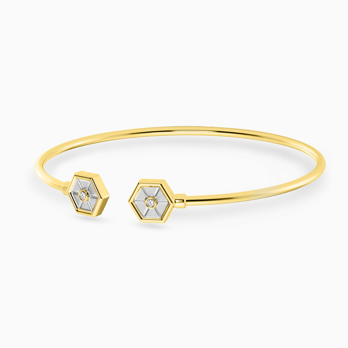 أسورة مفتوحة مطلية بالذهب شكل سداسي مزينة بألماس مختبرات