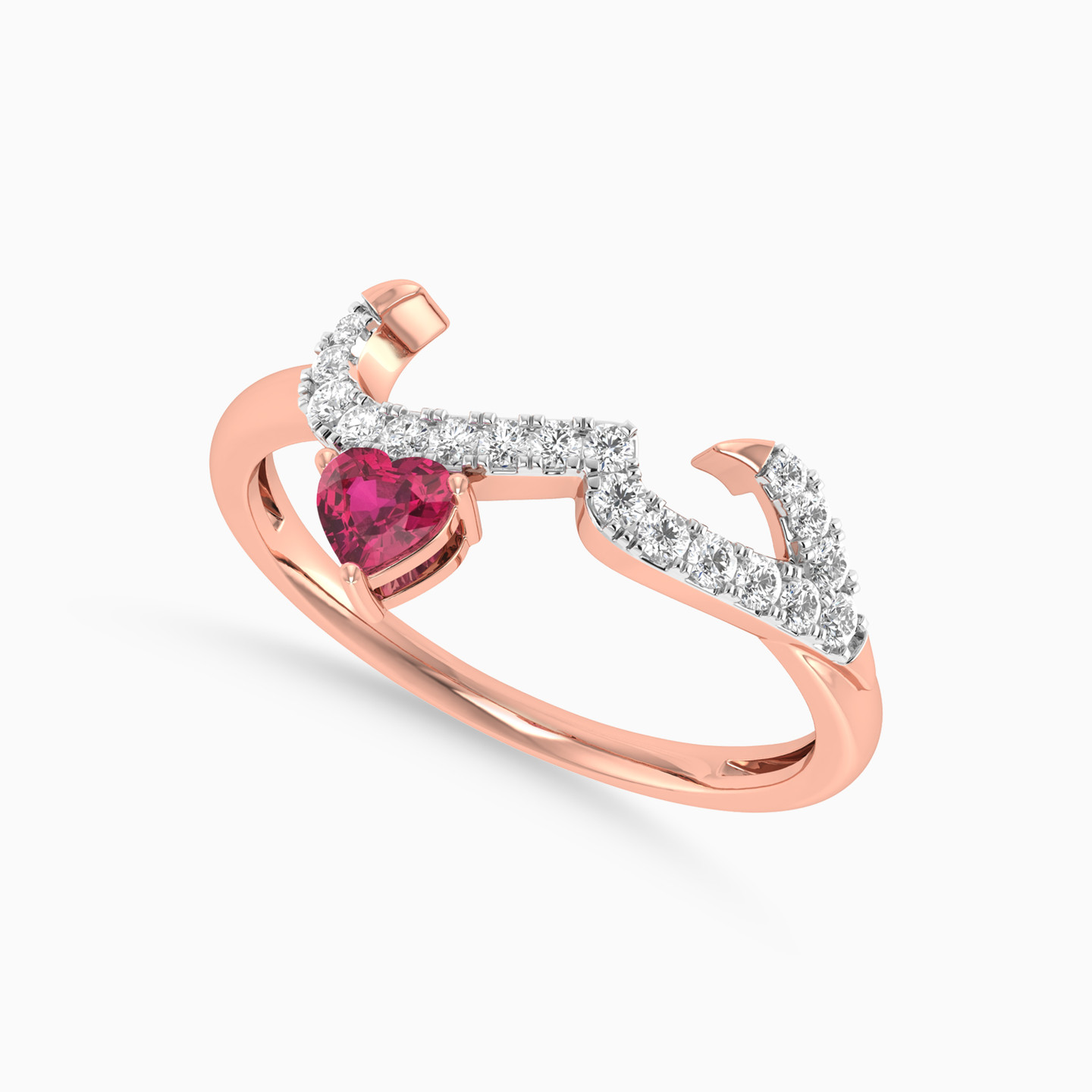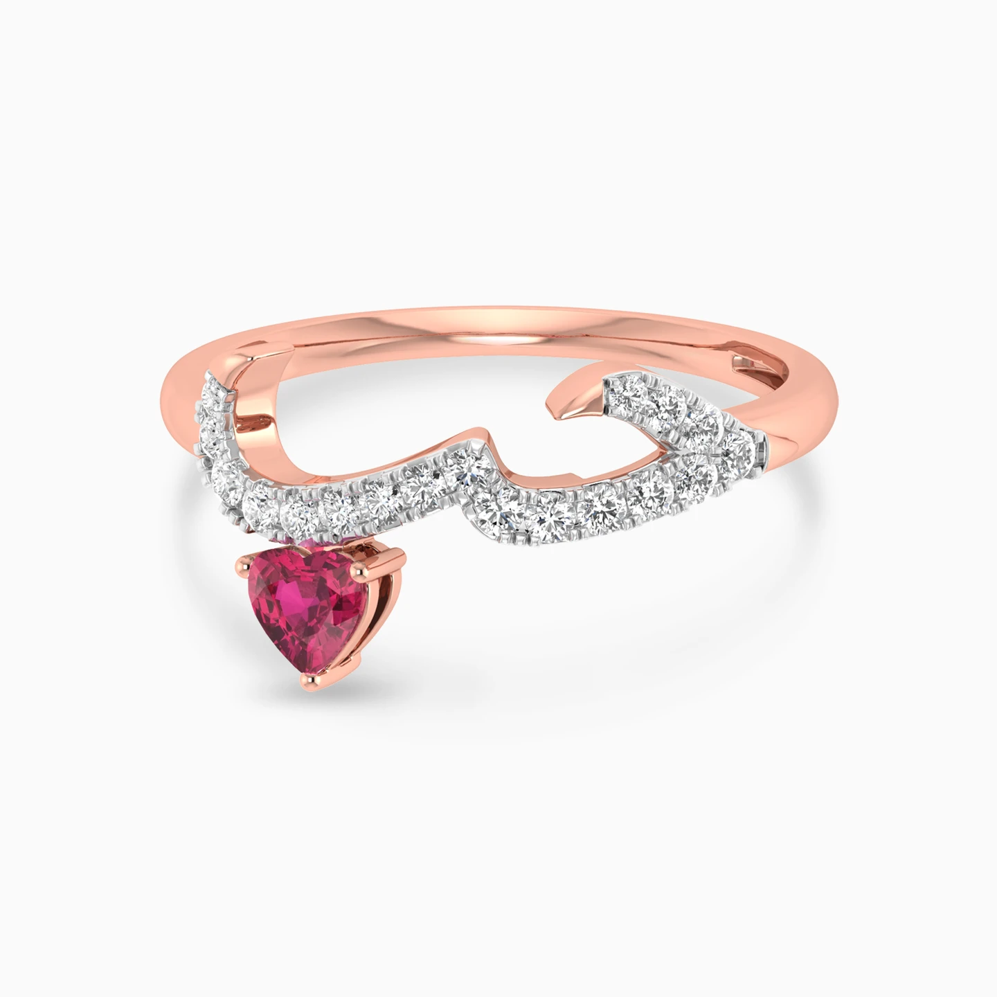 Speak the language of love with this 18-karat rose gold statement ring from L'azurde Diamonds. A sleek band serves as the canvas for the exquisite expression of "Love" adorned with the most sparkling brilliant-cut diamonds, each facet capturing the essence of eternal devotion. As the pièce de résistance, a captivating heart-shaped pink colored stone delicately suspended on three prongs adds a touch of glamour, making this ring a symbol of passion and commitment that transcends time.