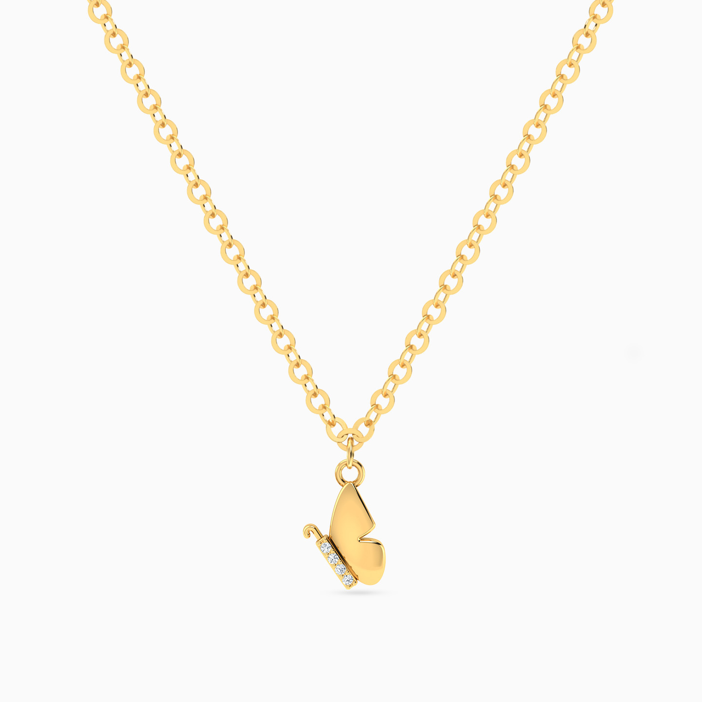 سلسلة شكل جناح فراشة ذهب عيار 18 قيراط مزينة بأحجار الزركون للأطفال