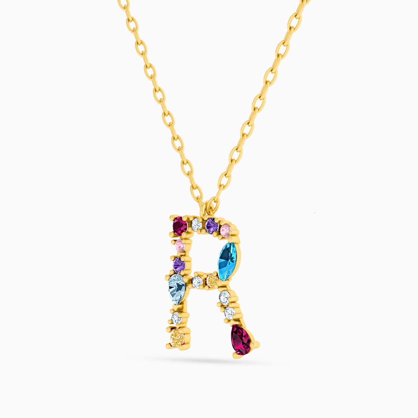 Spell out your initial in style with this R letter necklace from L’azurde Instyle. We love the colorful bouquet of stones that dot the alphabet giving it a dazzling appeal. Suspended from an 18-karat yellow gold chain, this necklace will easily transform into an everyday essential.