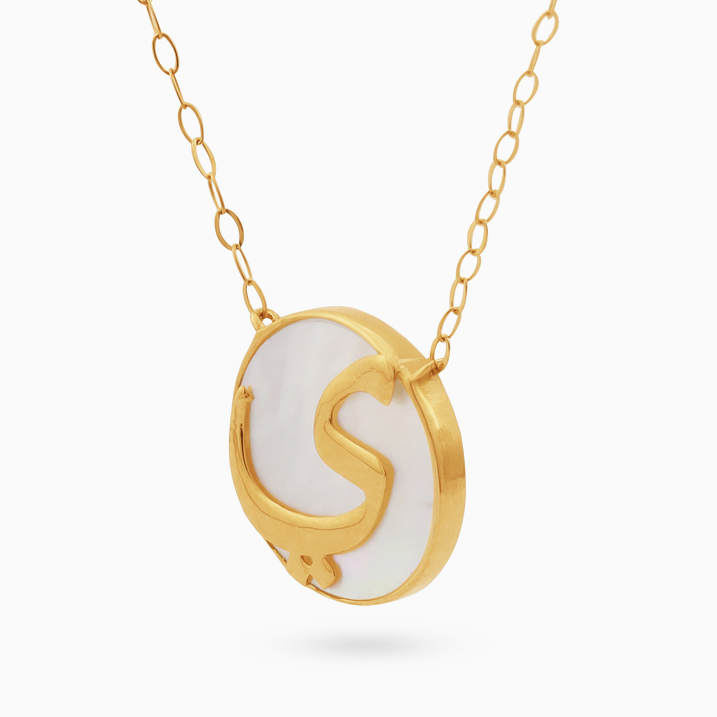 Who can resist the allure of this striking Ya letter pendant from L’azurde Instyle. This classic pendant is a beautiful combination of 18-karat yellow gold script set against stunning white stone. Wear this pendant necklace workdays and weekends and you’ll always shine.