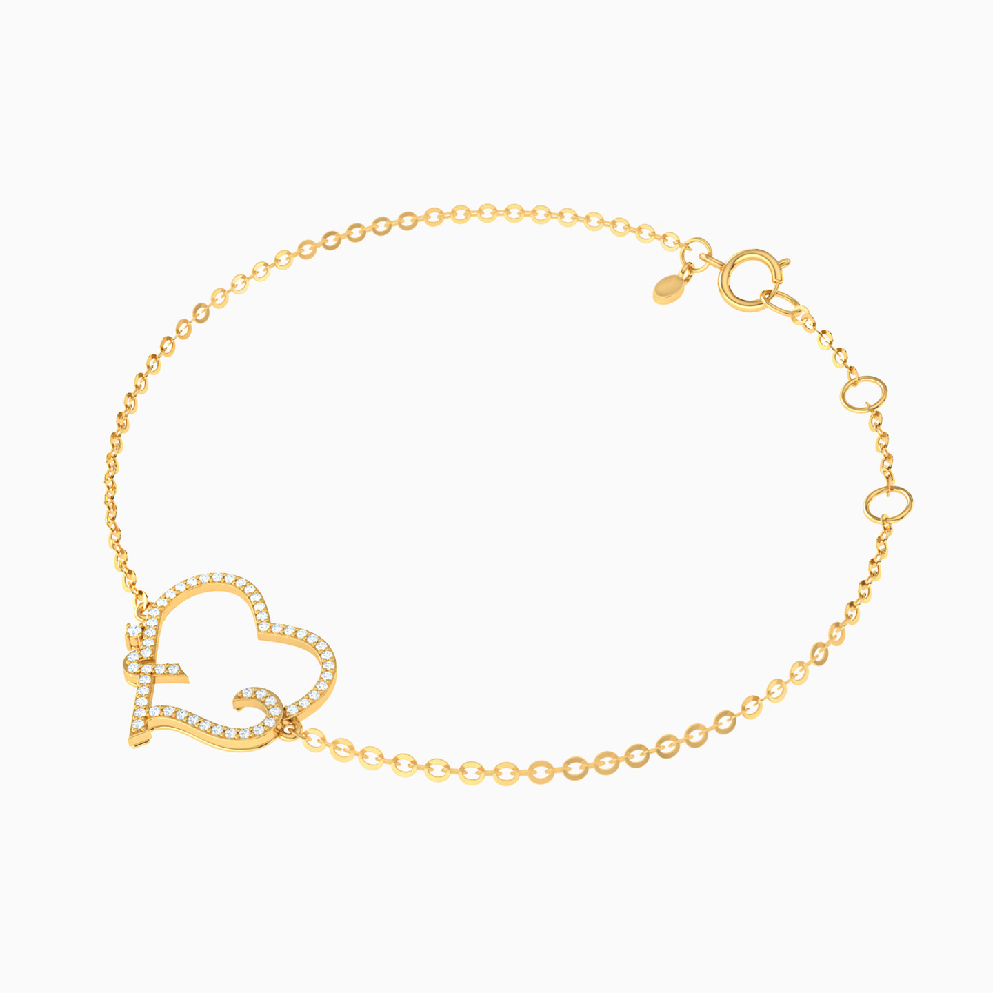أسورة بسلسلة شكل كلمة (حب) ذهب عيار 18 قيراط مزينة بالألماس