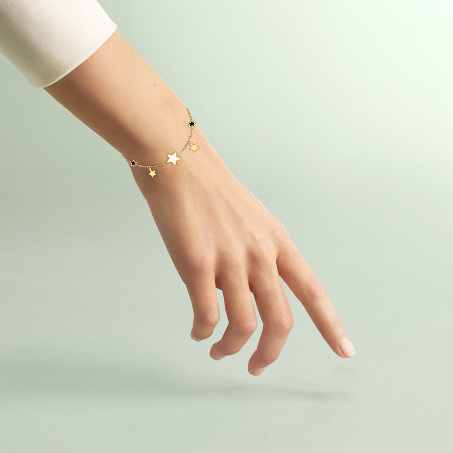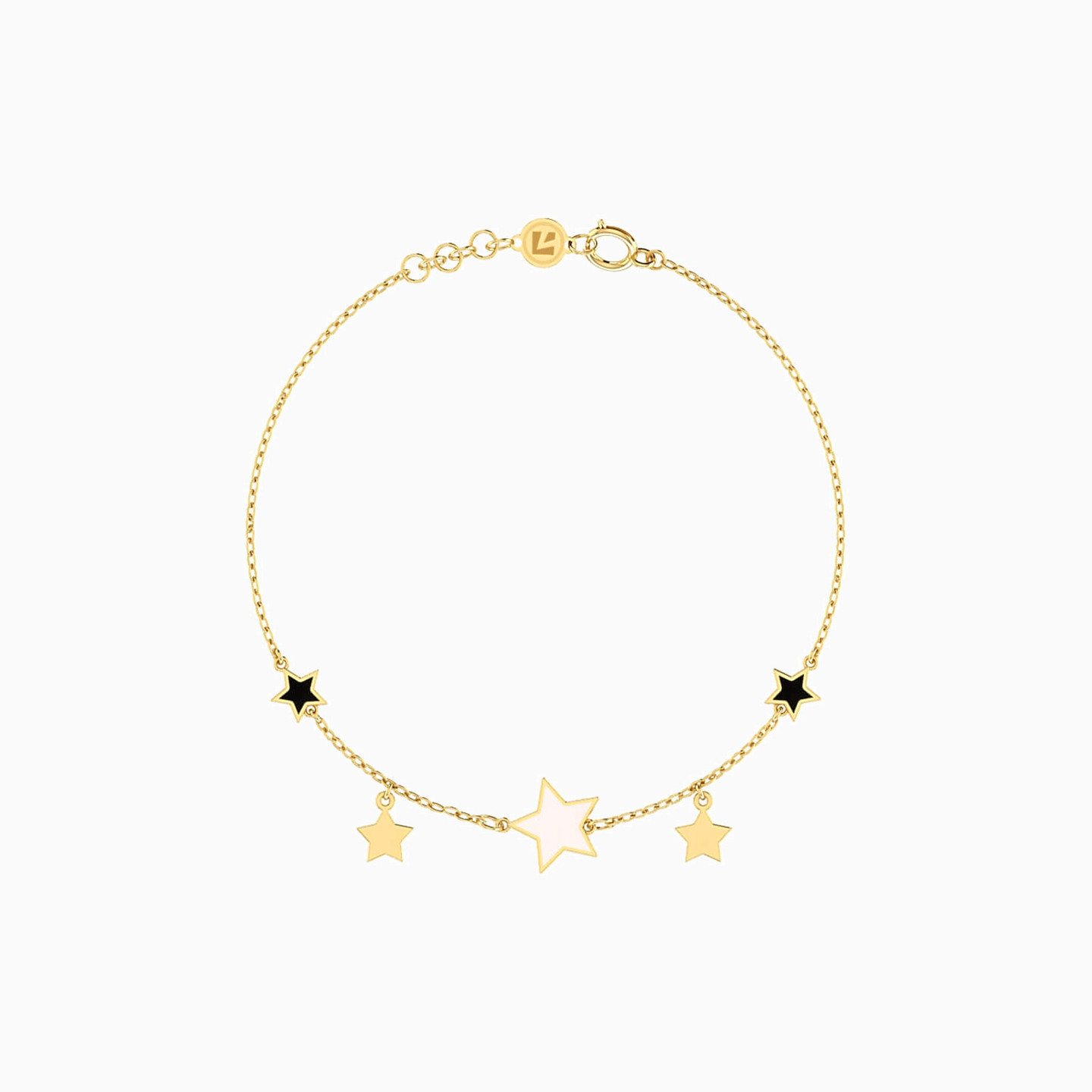 The monochrome enamel stars in this Miss L’ bracelet make it a wonderful addition to your work to weekend closet. Cast in 18-karat yellow gold, this smart piece will work wonderfully solo or paired with a stylish watch.