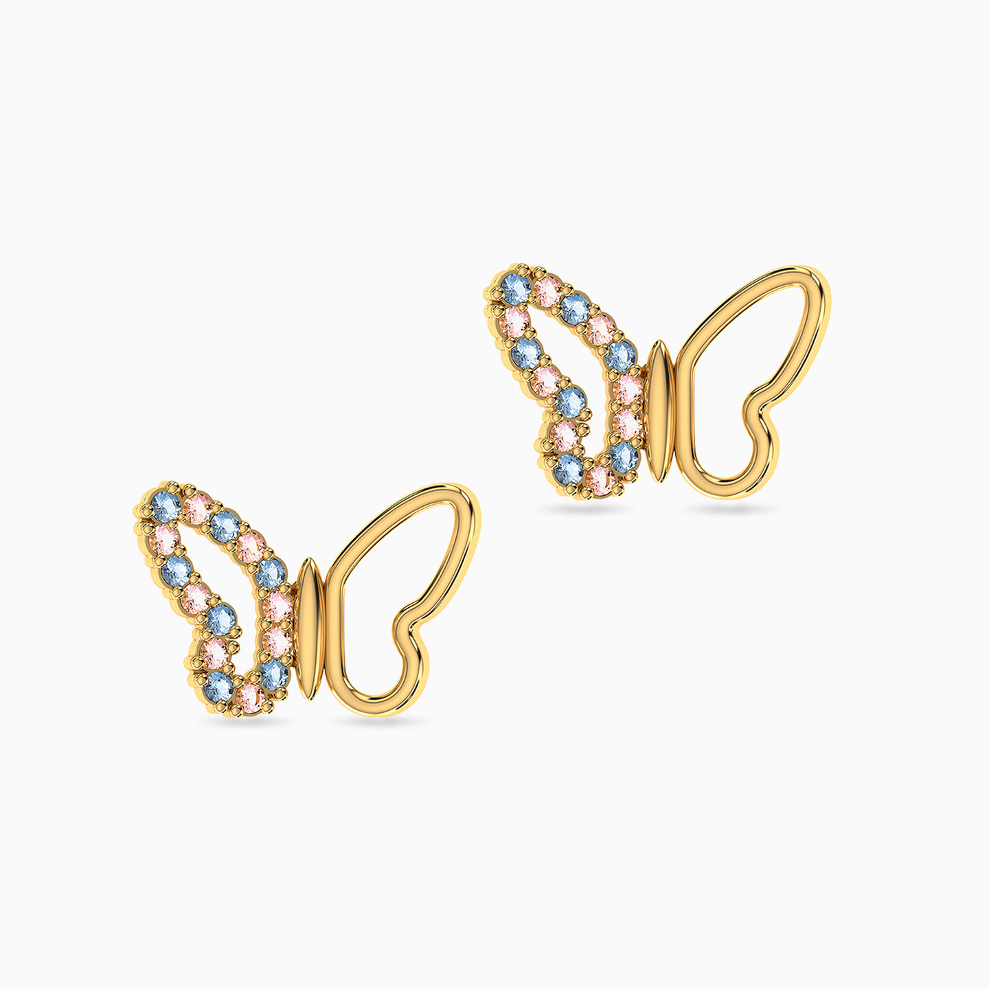 أقراط صغيرة ذهب فراشة عيار 18 قيراط مزينة بالأحجار الملونة