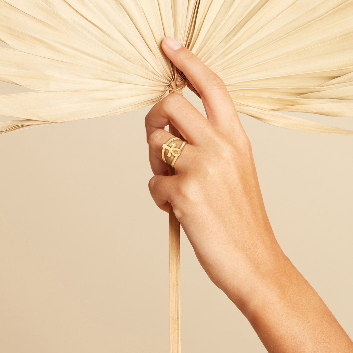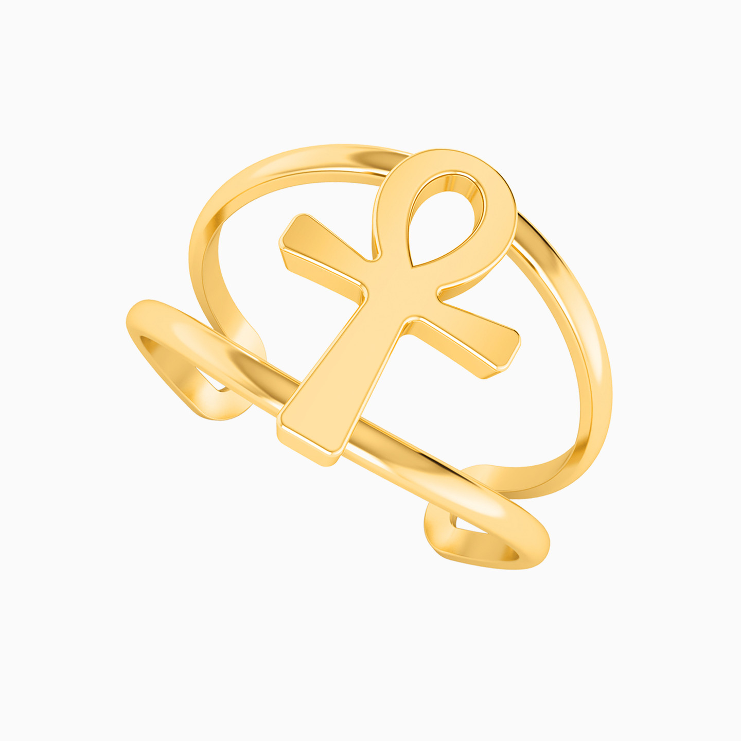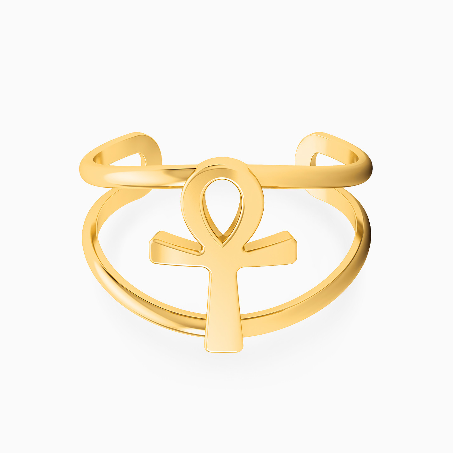 Add a touch of tradition to your outfit with this Ankh ring from Miss L'. Lending a mystical appeal, this 18-karat yellow gold piece is designed in a minimal style with dual bands and will seamlessly work itself into your everyday wardrobe. Pair it with a matching bracelet to complete the look.