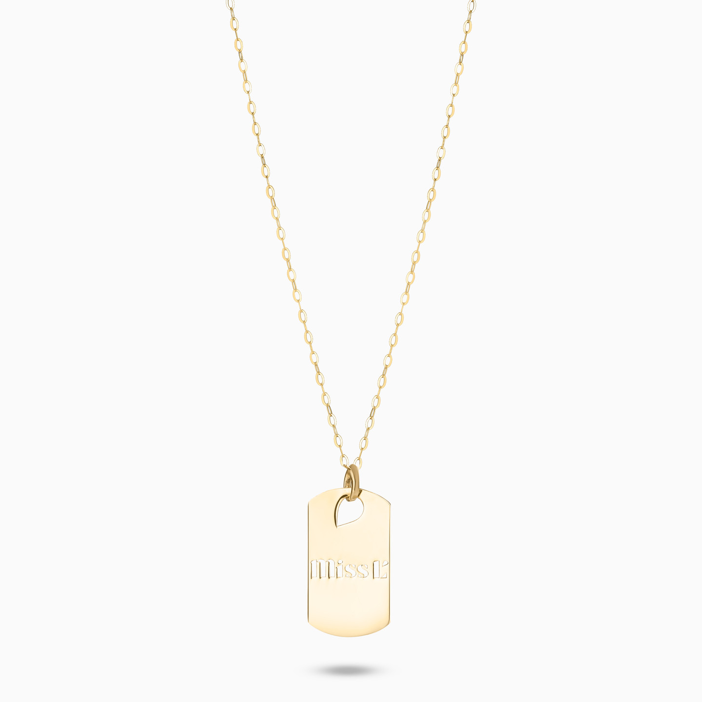 Step out in style by wearing this timeless gold pendant necklace from Miss L'. The simply sophisticated chain is beautifully crafted in 14-karat yellow gold and features a chic and feminine pendant engraved with the Miss L' brand name. We love this classic look worn with a V neck blouse or sweater.