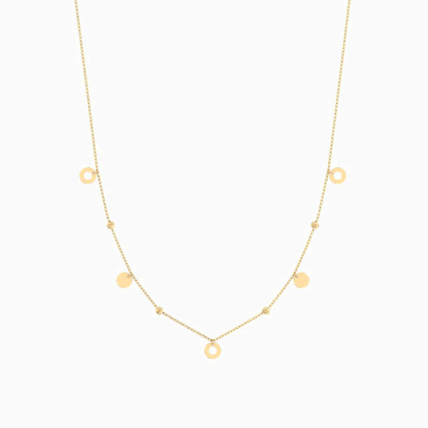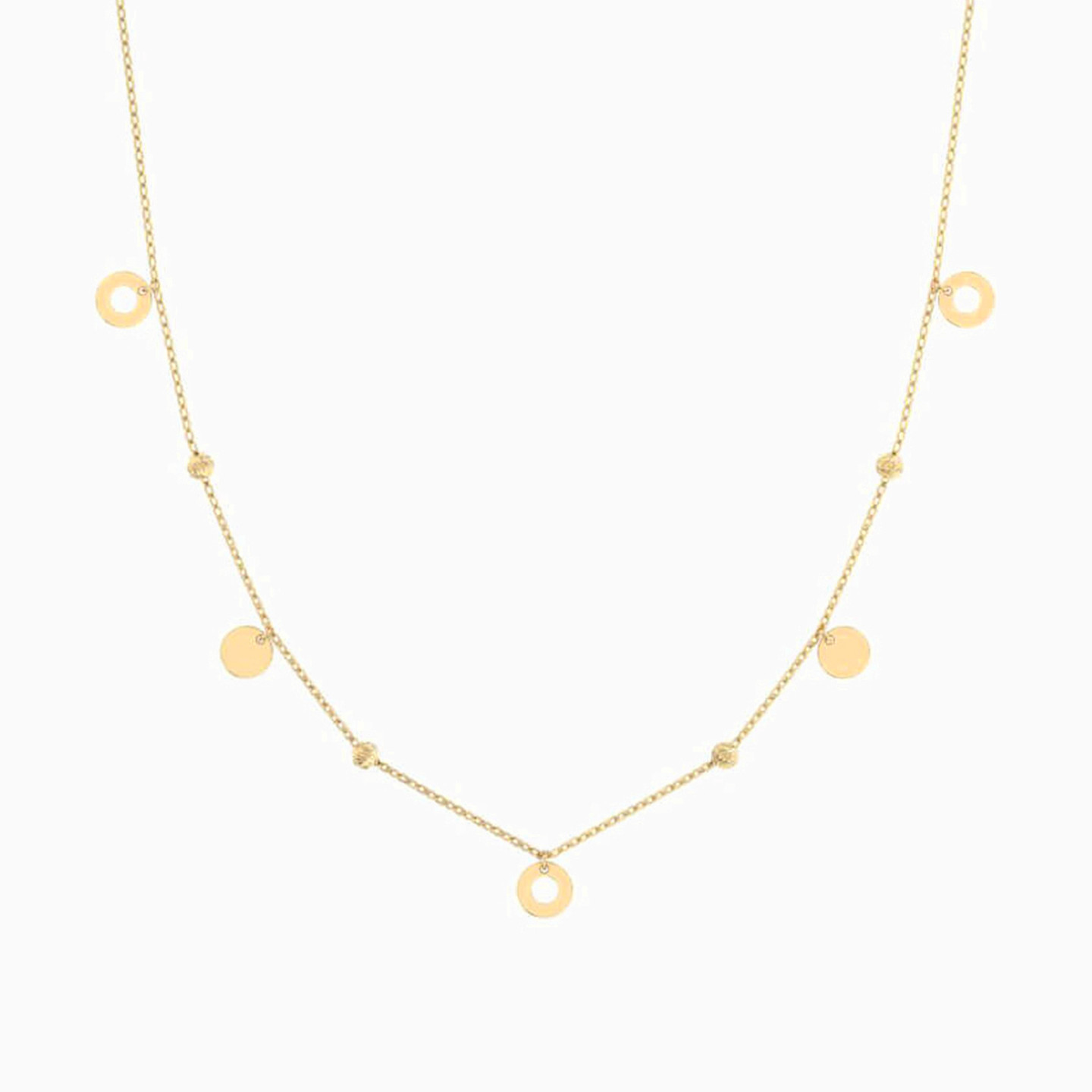 Oozing elegance, this Miss L’ necklace is one that will never go wrong. So versatile, this 18-karat yellow gold chain is dotted with circle charms and will work from day to evening, whether you wear it on its own, or layer it with similar pieces from our collection.