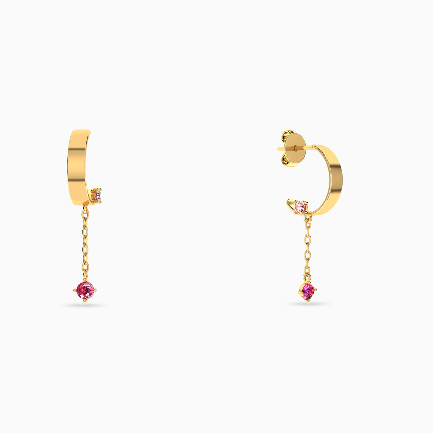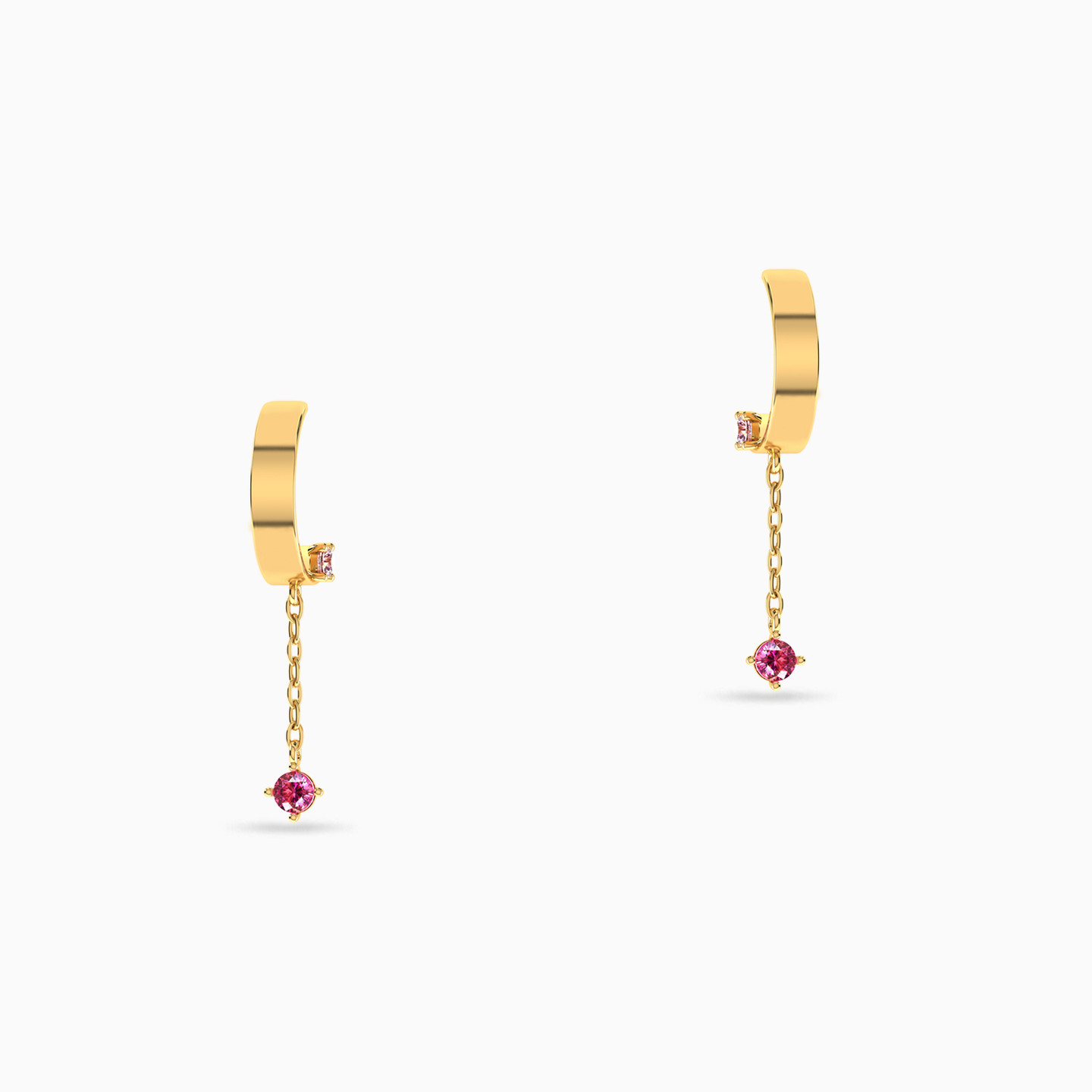 أقراط متدلية ذهب دائرية عيار 14 قيراط مزينة بحجر أحمر