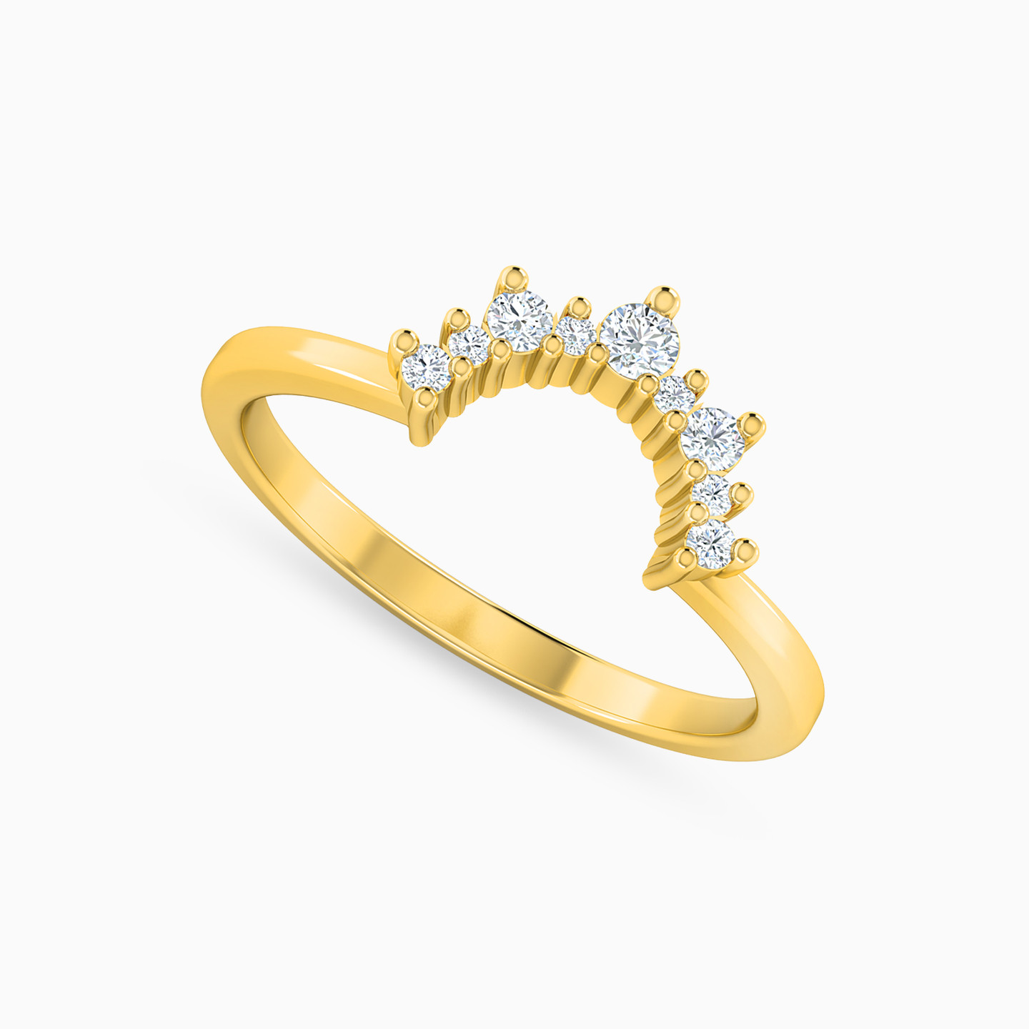 Slip on a diamond studded crown into your fingers as you step out wearing this ring from Miss L’. We love the 18-karat yellow gold finish and the distinct placement of the brilliant cut diamonds in this piece. Effortlessly elegant, it will work easy with your everyday wardrobe.