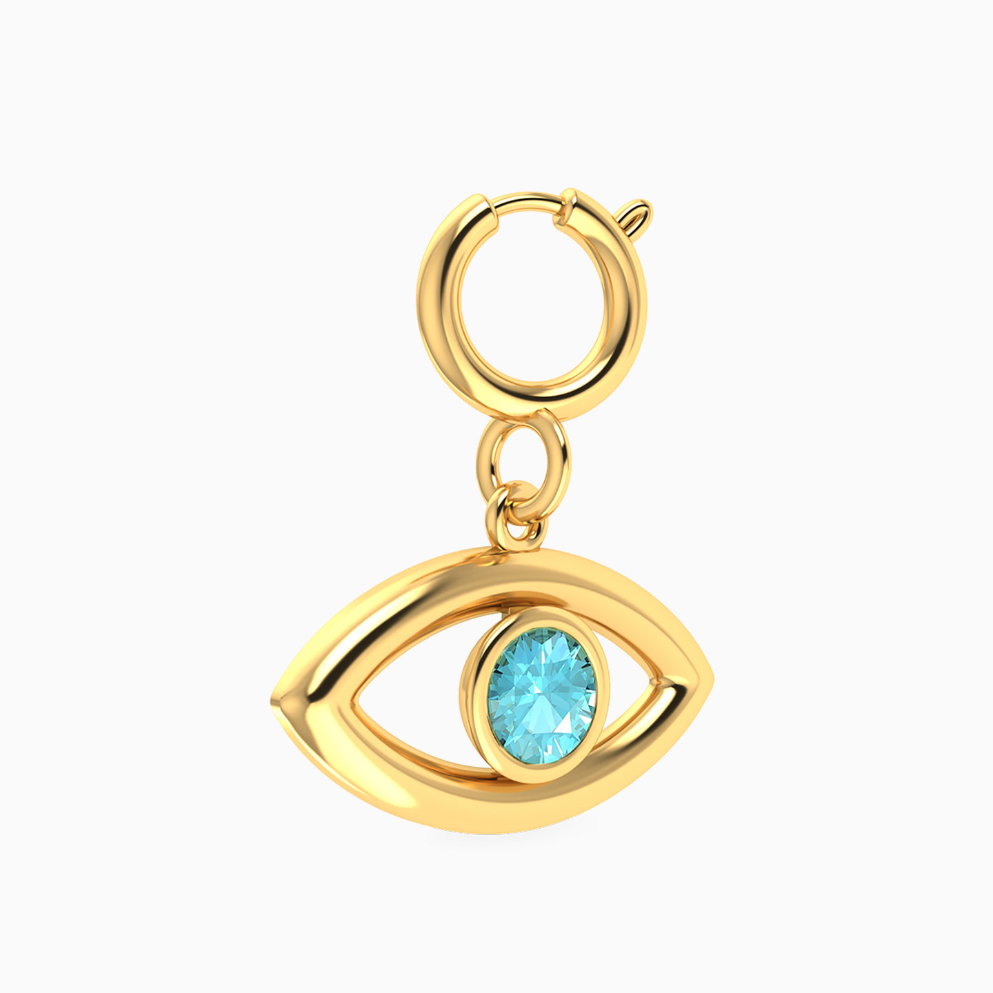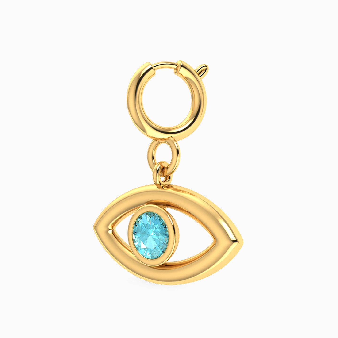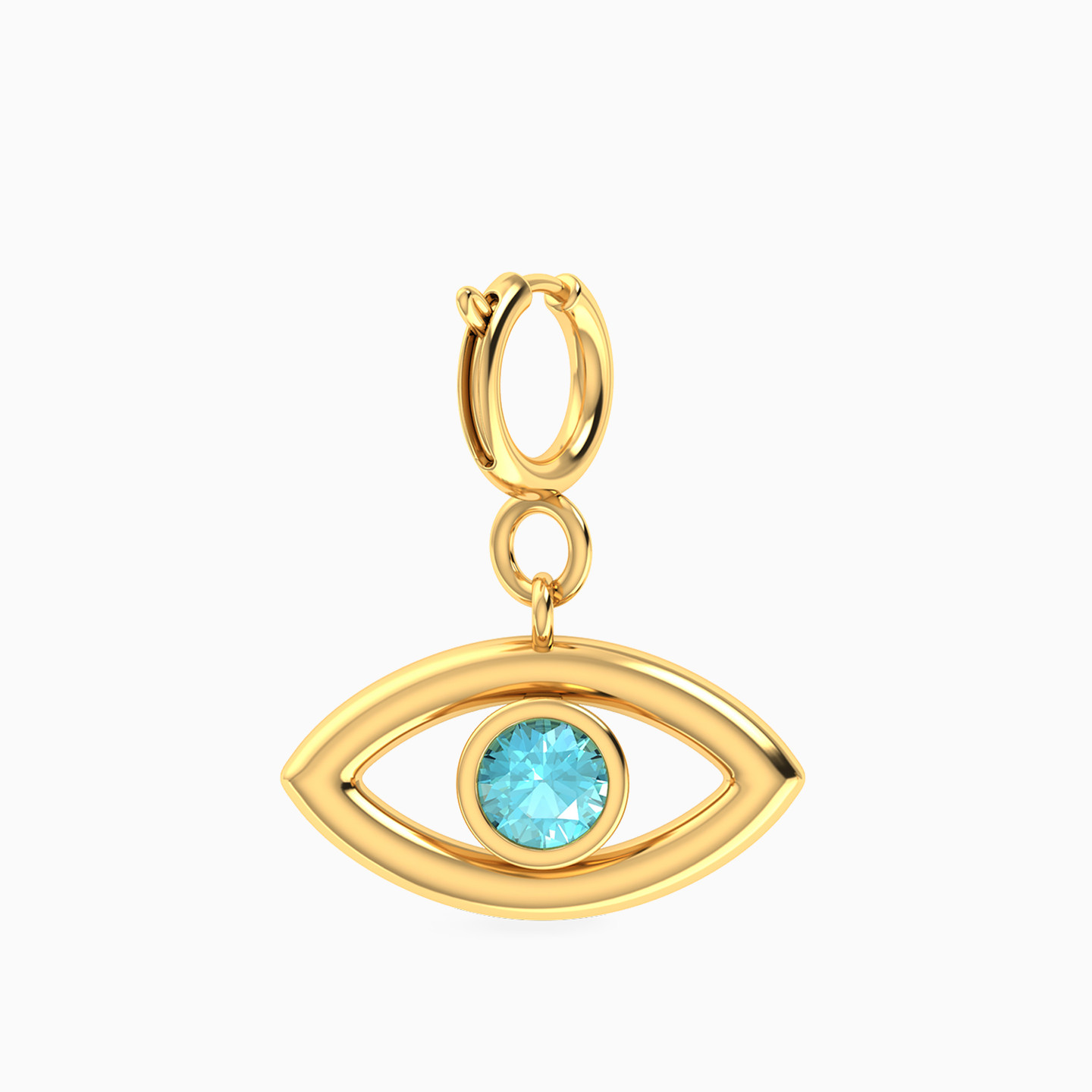 A charm that sees for you. This eye-shaped Miss L’ charm features a striking blue stone at the center—symbolizing protection, intuition, and a touch of magic. Add it to your bracelet or necklace for a meaningful sparkle.
