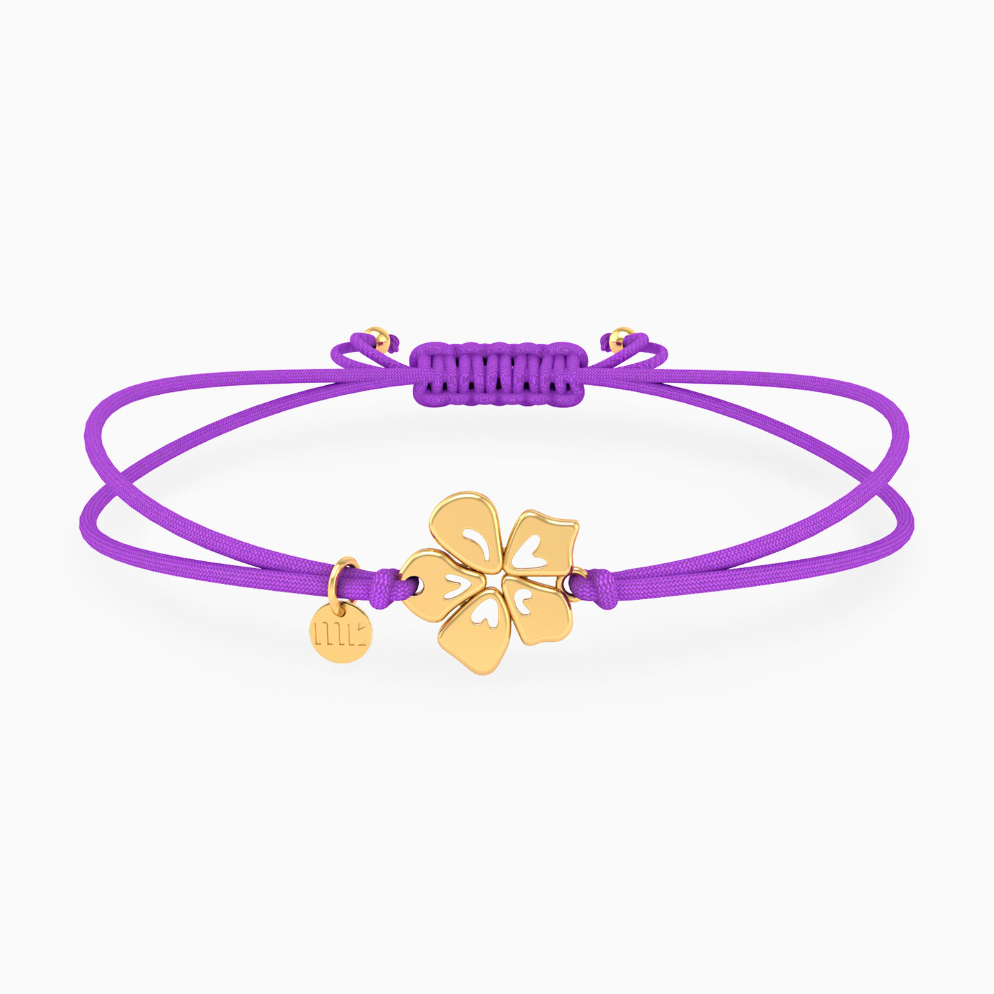 Sweet and full of joy, this purple cord bracelet blooms with a golden flower charm—each petal shaped like a tiny heart. It’s a lovely everyday piece that adds a playful, feminine touch to any outfit, and makes a thoughtful gift that says “you’re special” in the most charming way.
