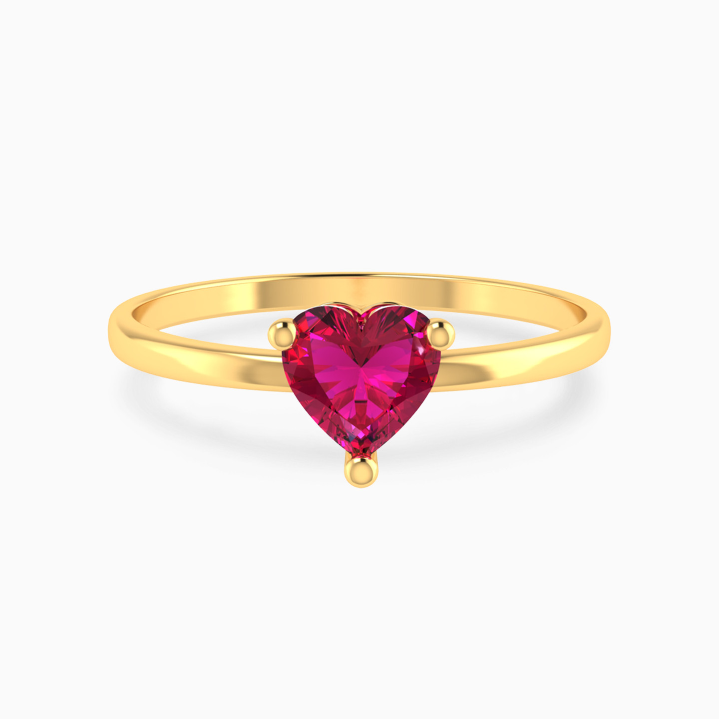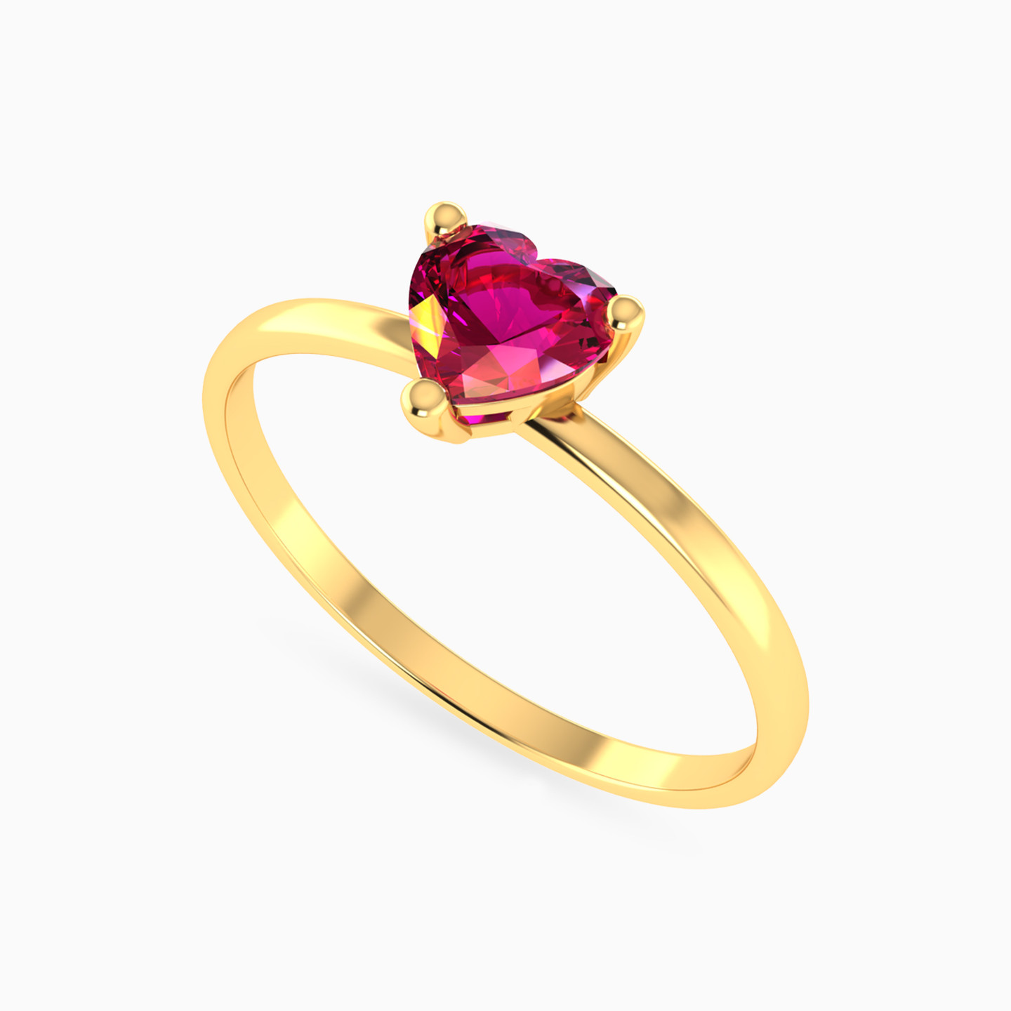 خاتم شكل قلب ذهب عيار 14 قيراط مزين بحجر وردي