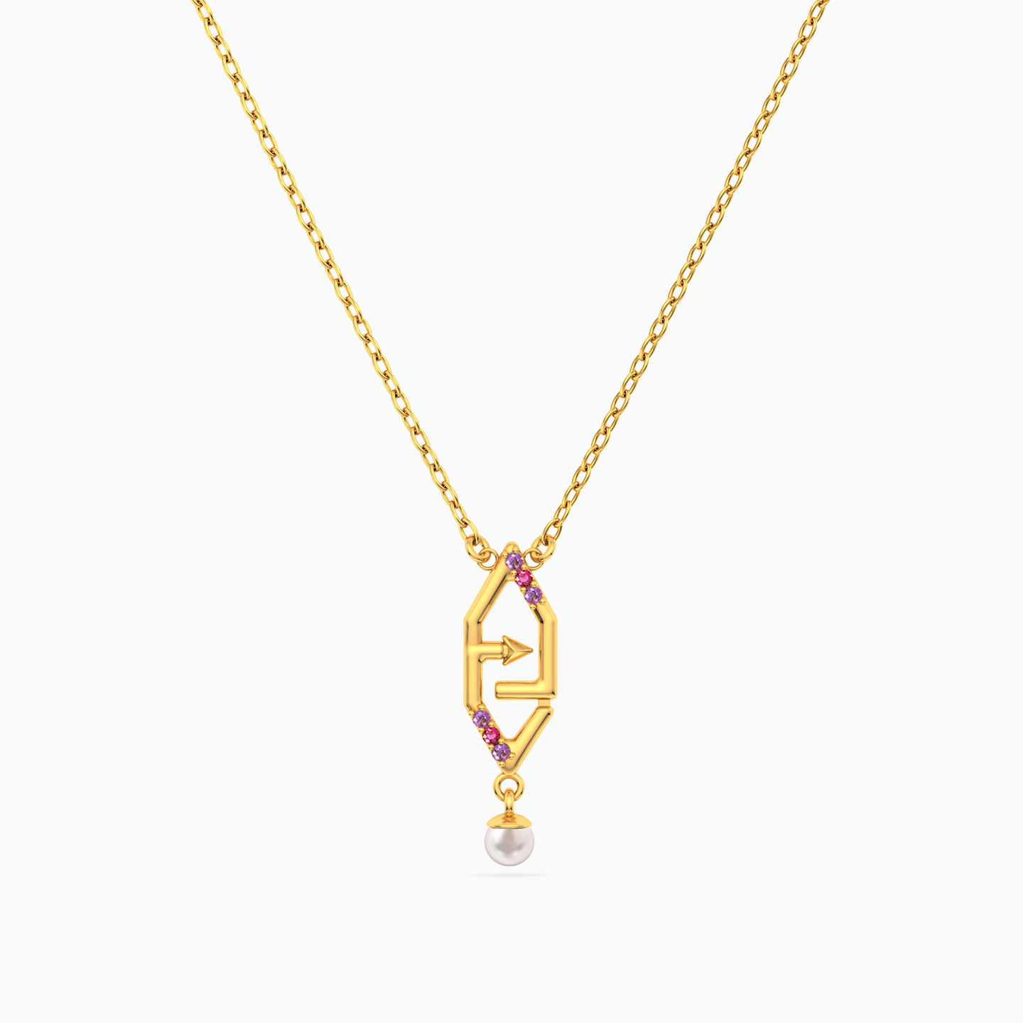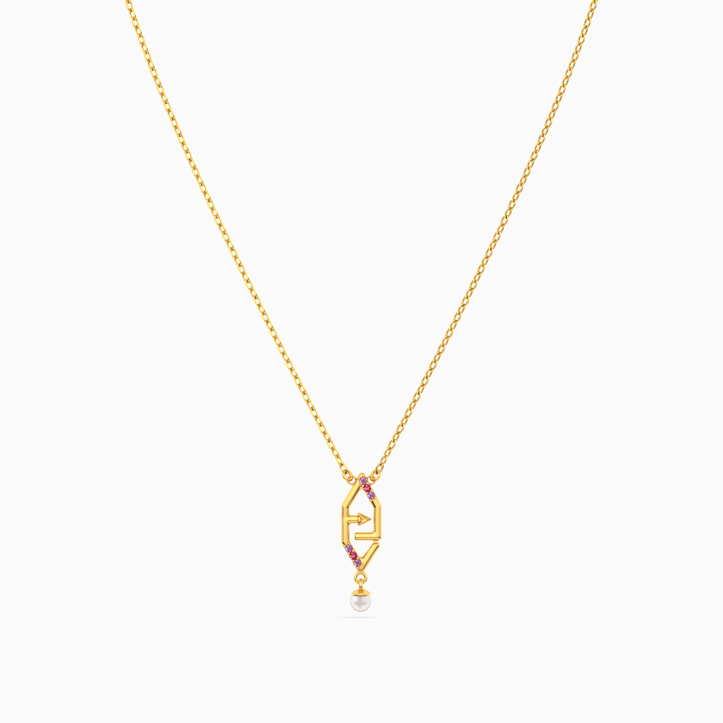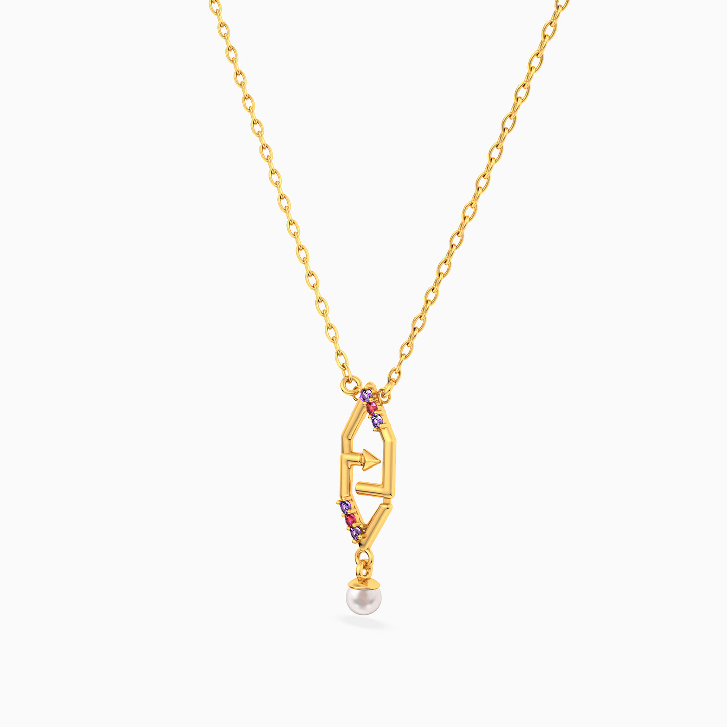 سلسلة شكل سهم داخلي ذهب عيار 18 قيراط مزينة بأحجار ملونة ولؤلؤ