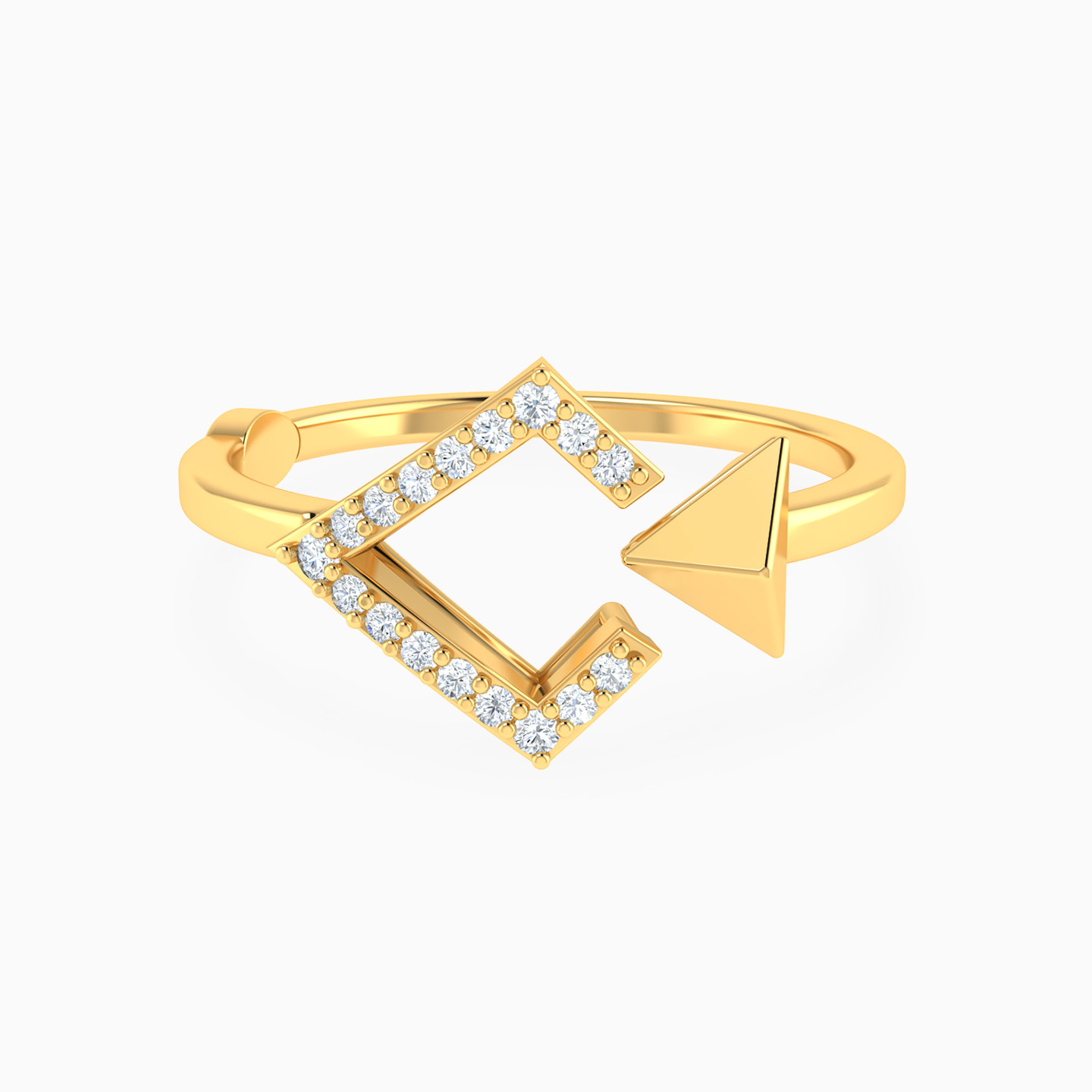 خاتم شكل جوهرة ذهب عيار 18 قيراط مزين بالألماس