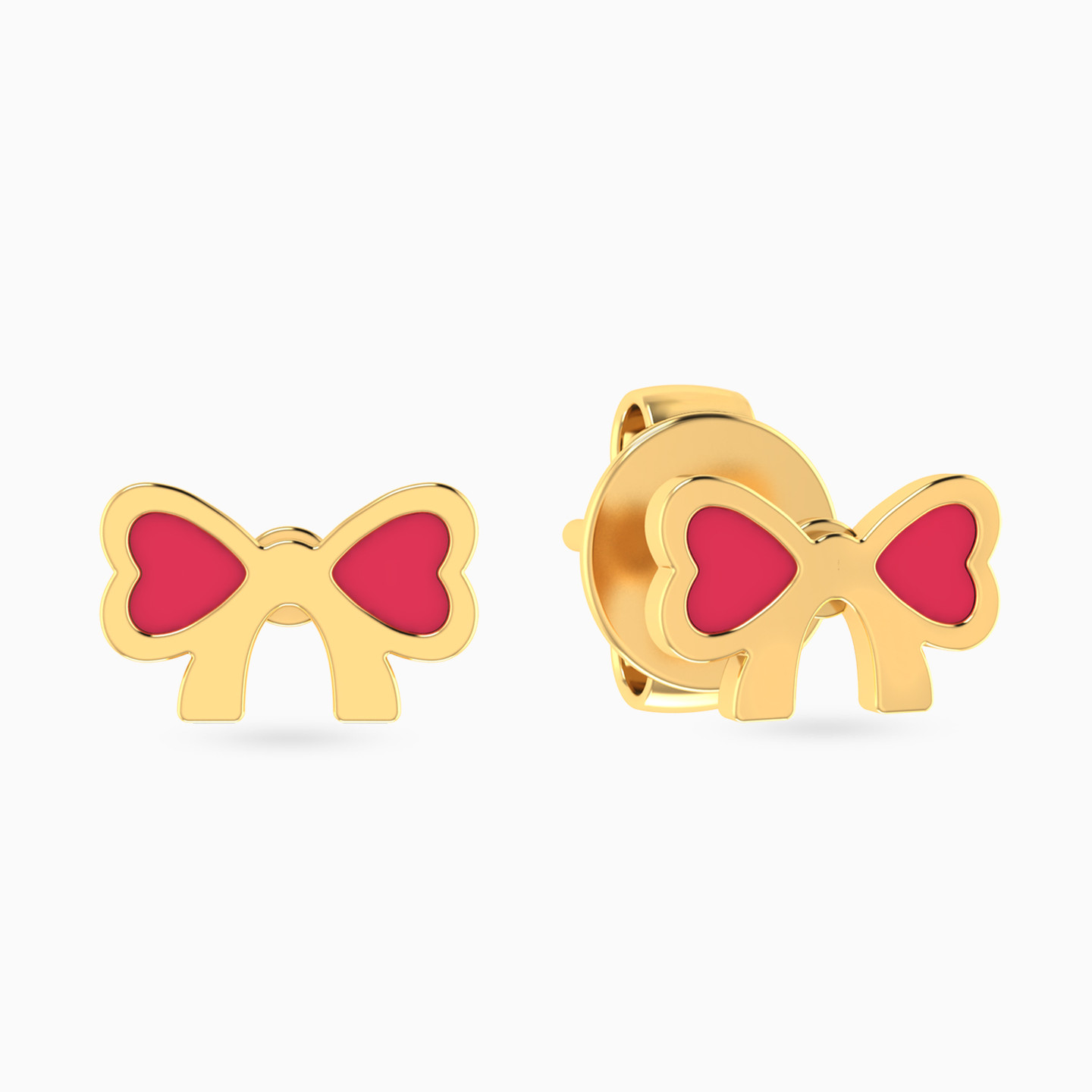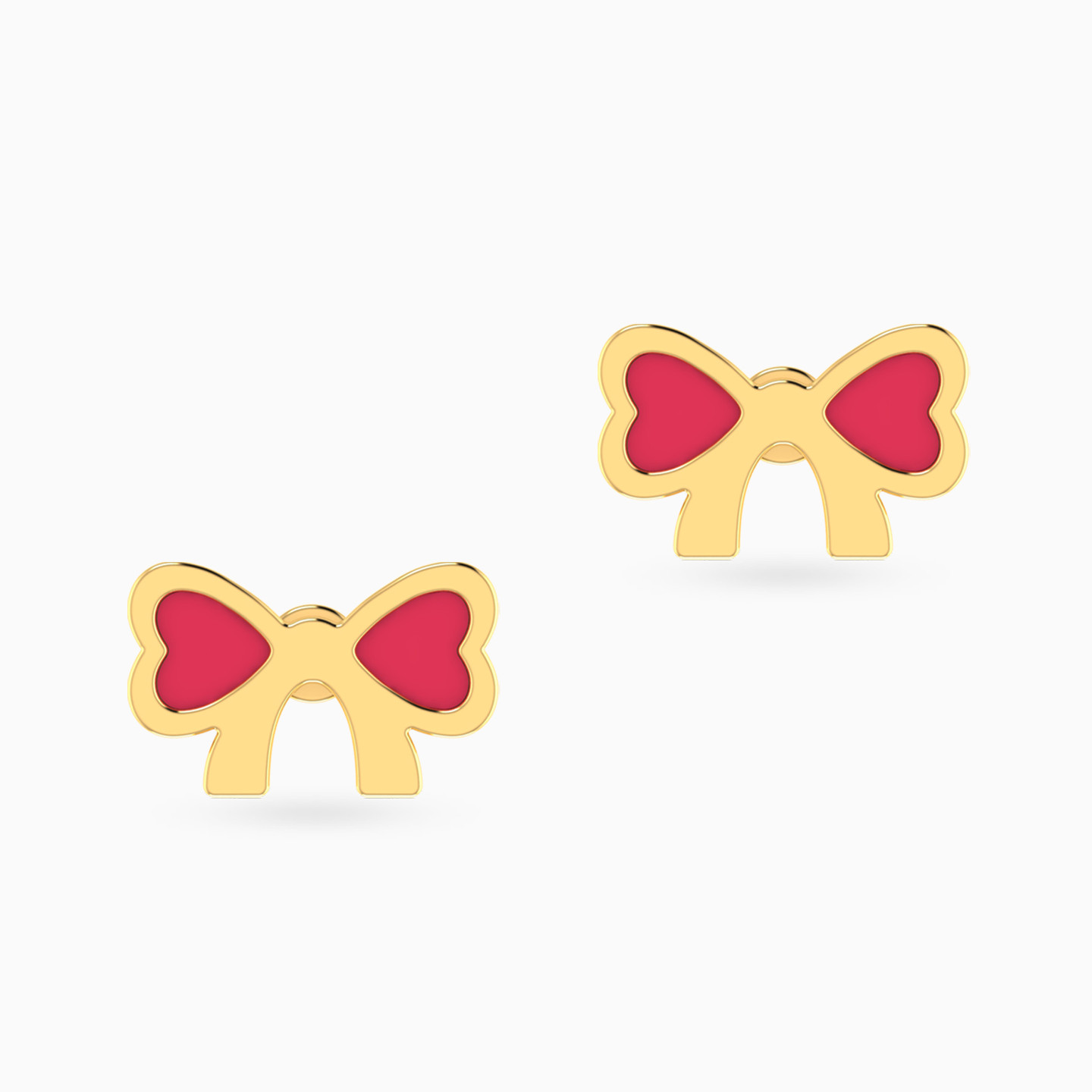 These charming bow-shaped stud earrings from the Miss L Kids collection are crafted from 14k yellow gold and adorned with a playful enamel coating. Perfectly designed for your little one or as a delightful gift for a newborn.