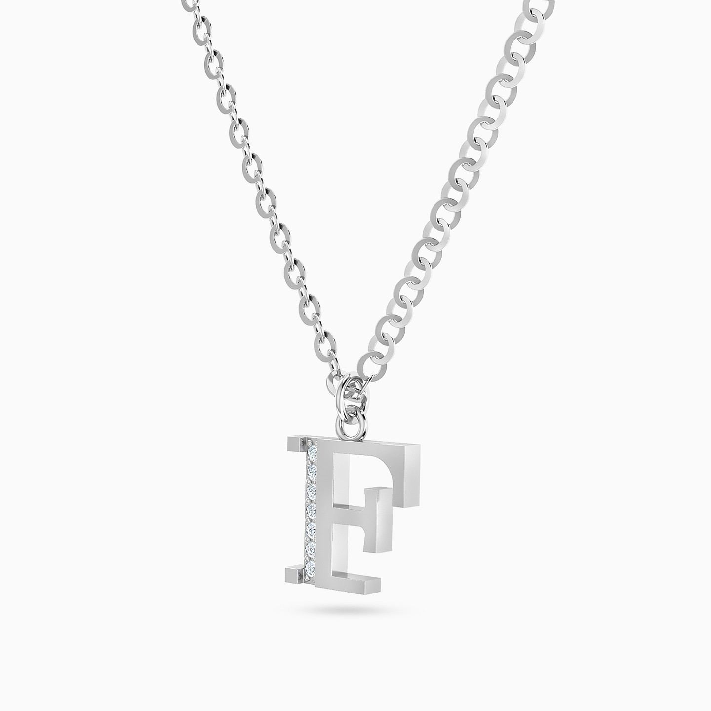 سلسلة شكل حرف F ذهب عيار 14 قيراط مزينة بالألماس