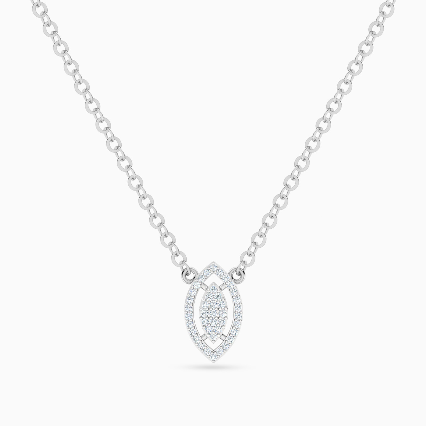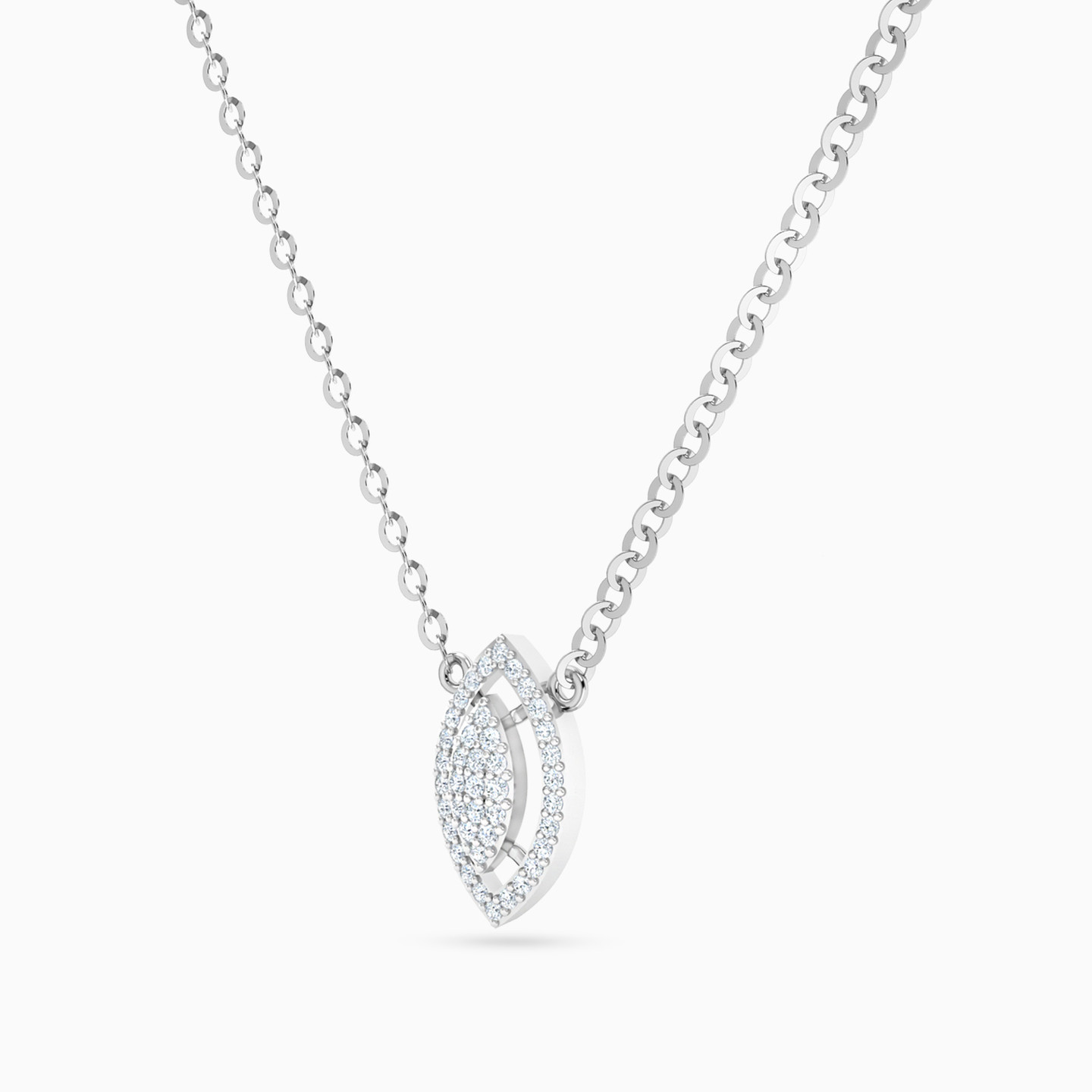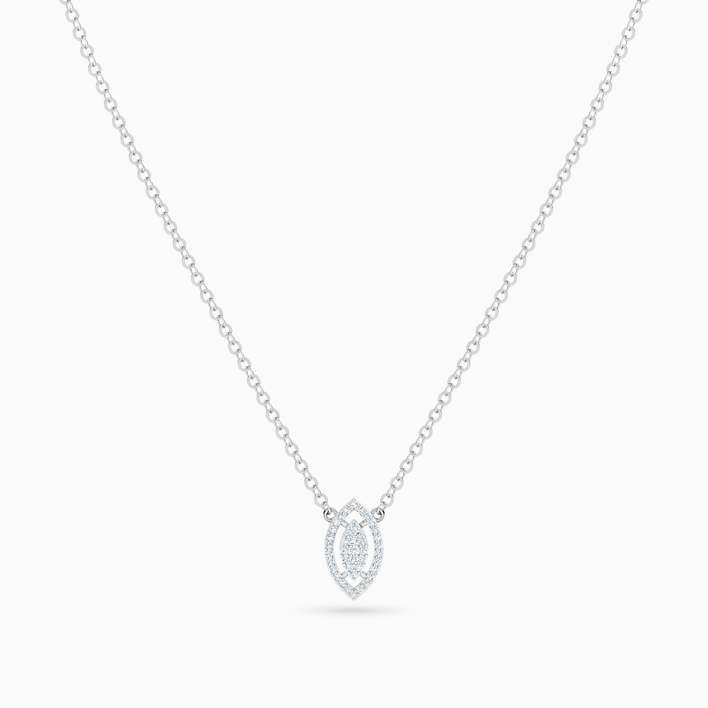 Grace in every curve. This white gold necklace features a double marquise-shaped pendant, encrusted with sparkling stones for a look that's both modern and timeless. Elegant enough for special occasions, yet subtle enough for daily wear.