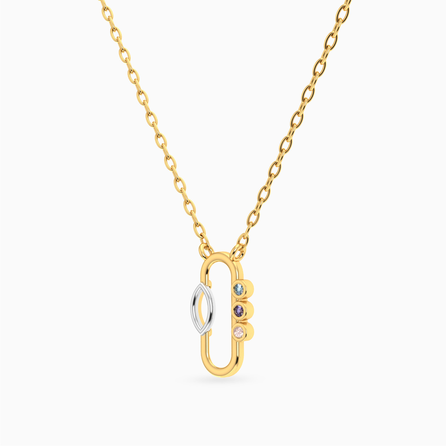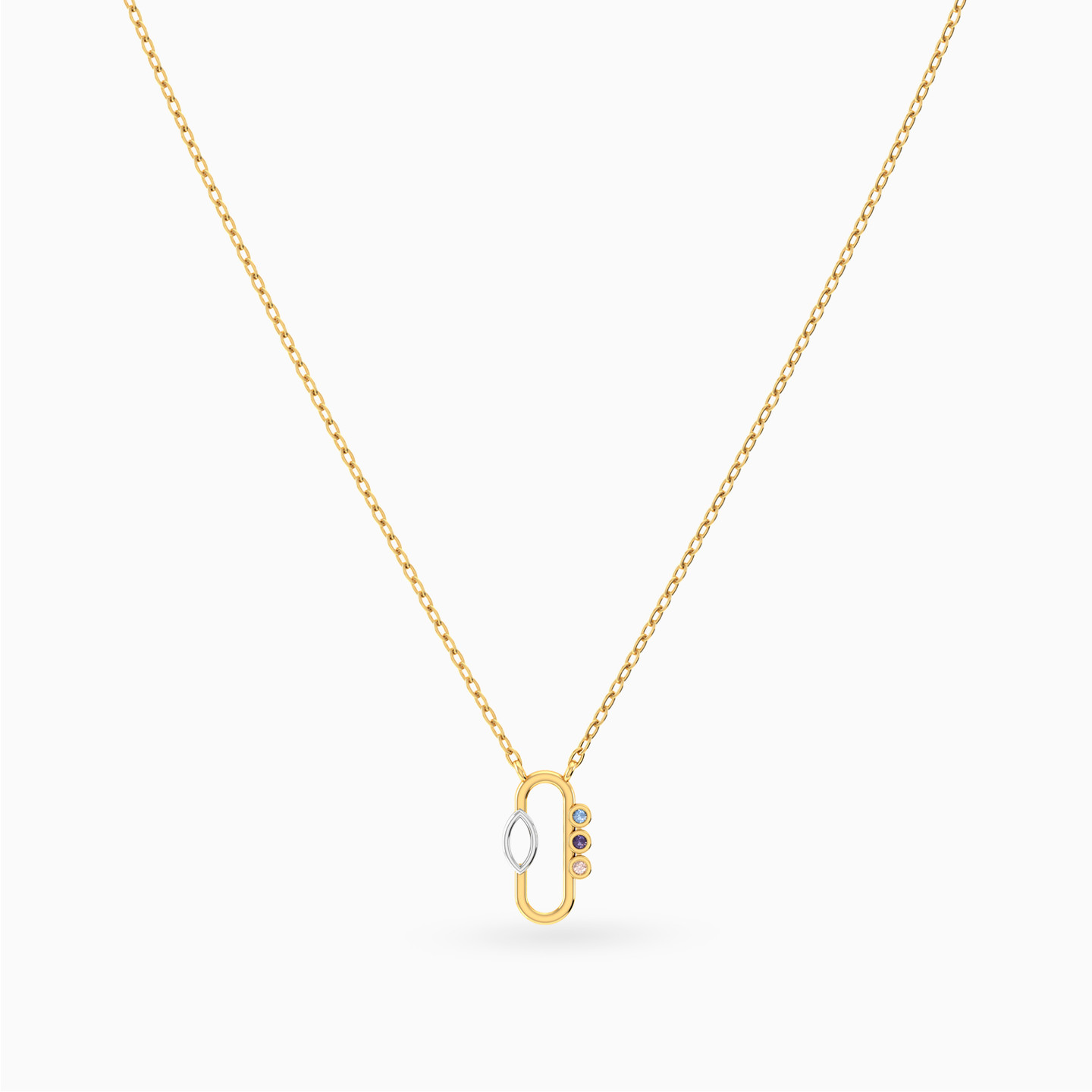 سلسلة شكل مفتوح ذهب عيار 14 قيراط مزينة بالأحجار الملونة