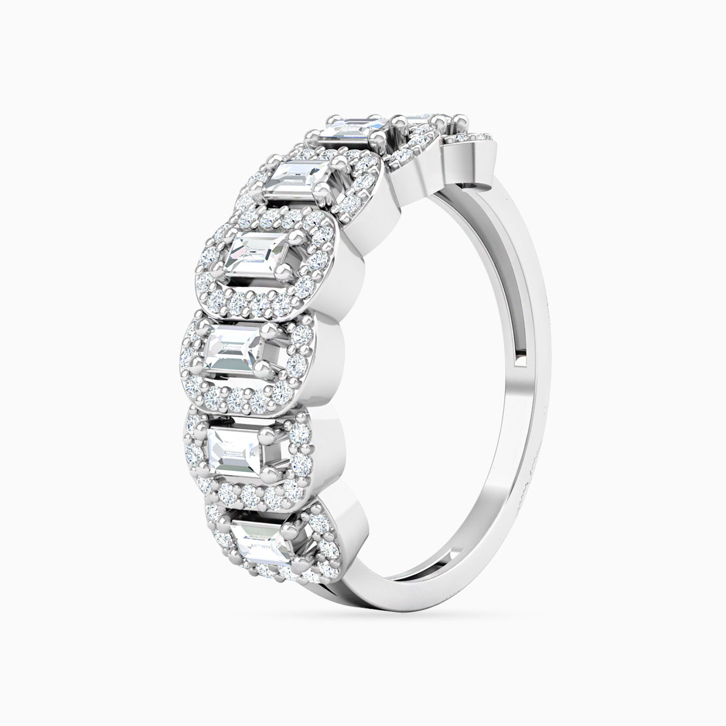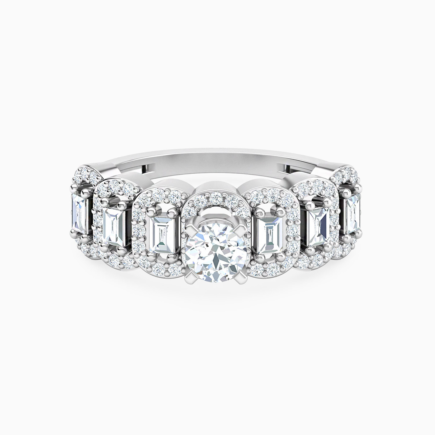 Indulge in the allure of this 18-karat white gold twin ring set from L'azurde Gold, a dazzling duo that promises to be the highlight of your jewelry collection! The sleek bands of both rings are adorned with an array of oval-shaped frames, each meticulously lined with sparkling round cubic zirconia and cradling a brilliant baguette-shaped cubic zirconia set on delicate prongs. One ring steals the spotlight with its stunning centerpiece - a large, round-shaped cubic zirconia, prong-set high in the center, creating an irresistible focal point. Stack them together to go all out or wear them individually, depending on the occasion.