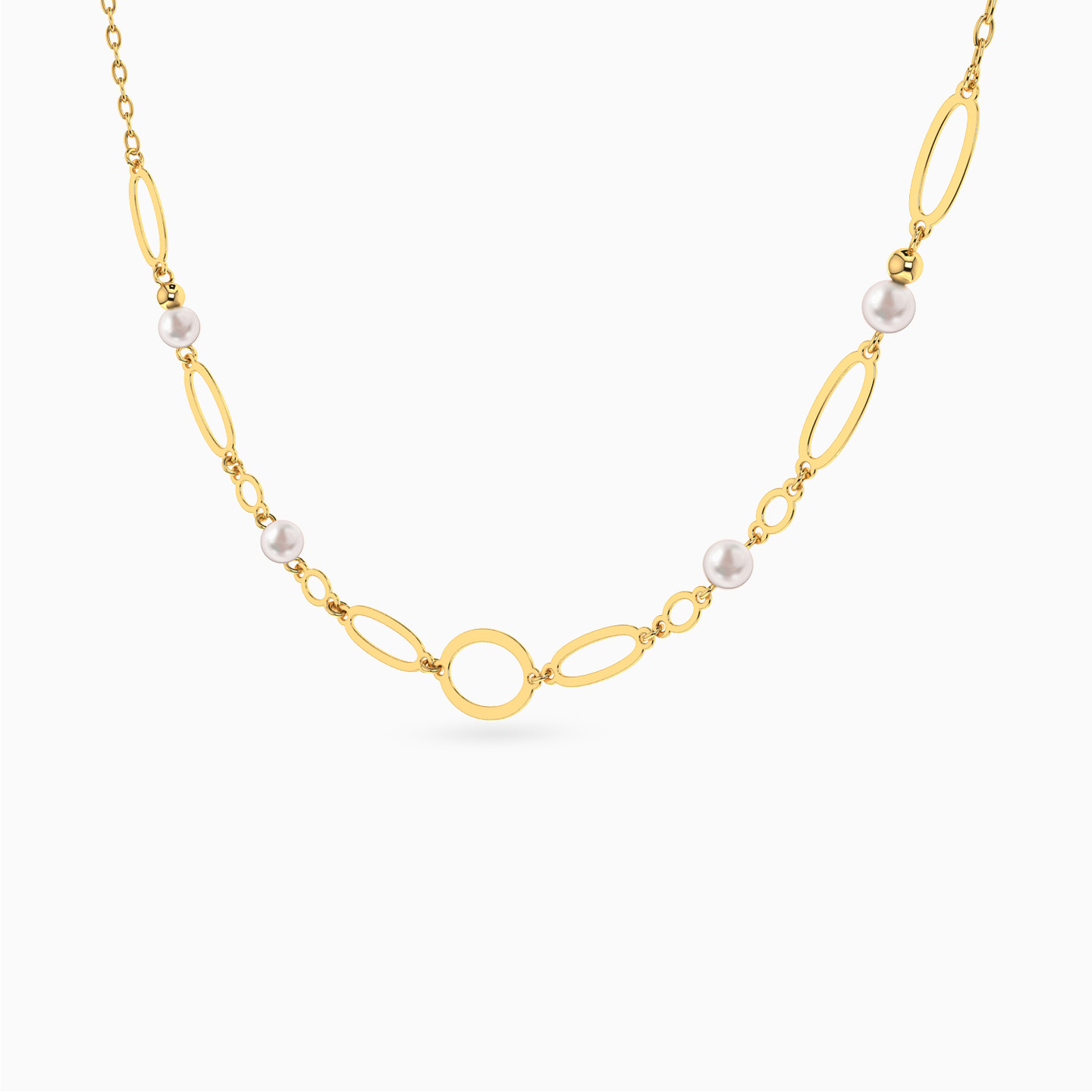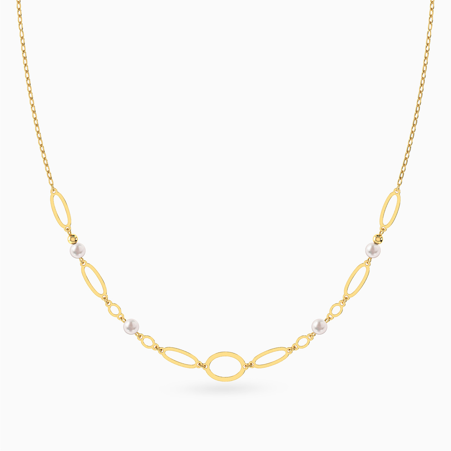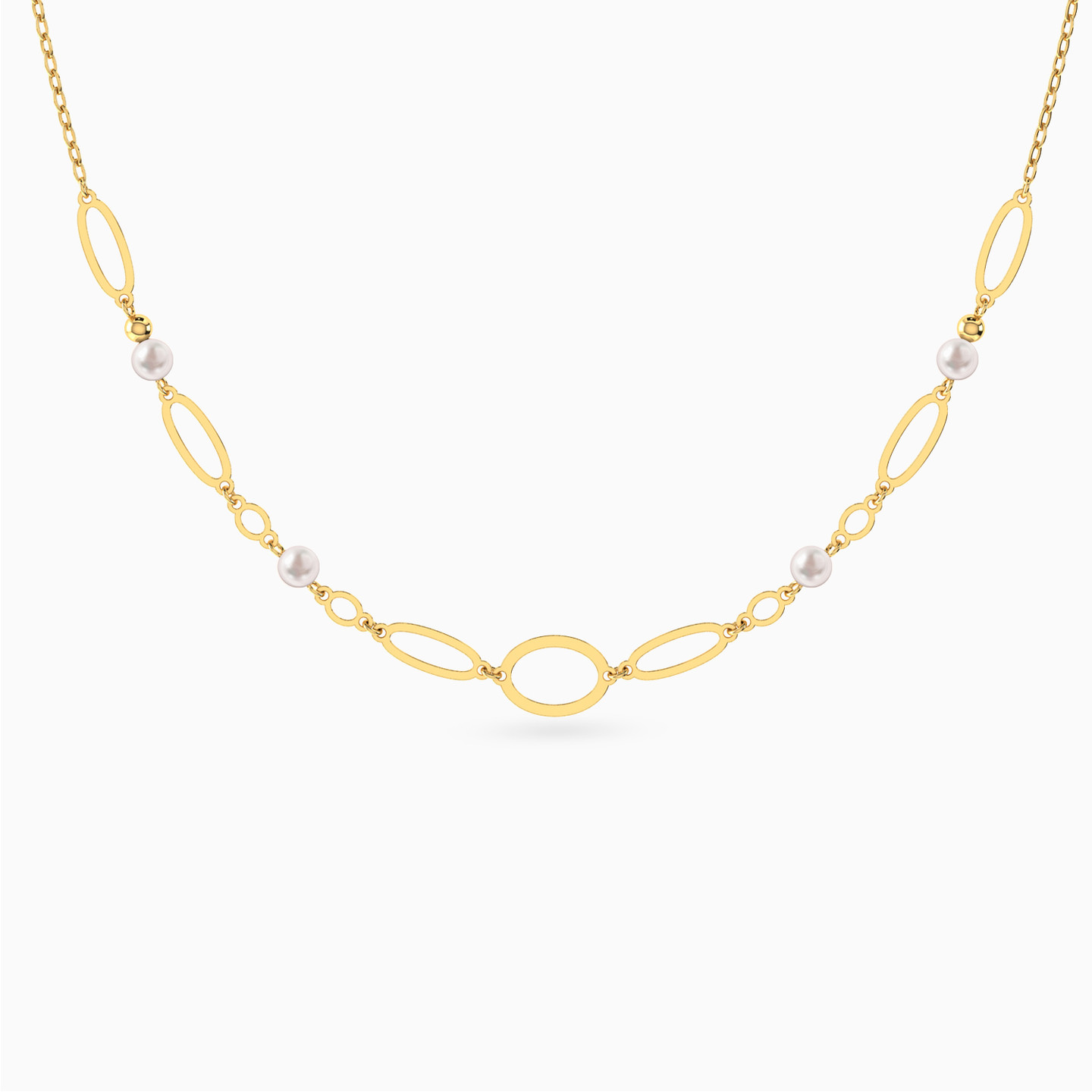 سلسلة شكل حلقات بيضاوية ذهب عيار 14 قيراط مزينة بلؤلؤ