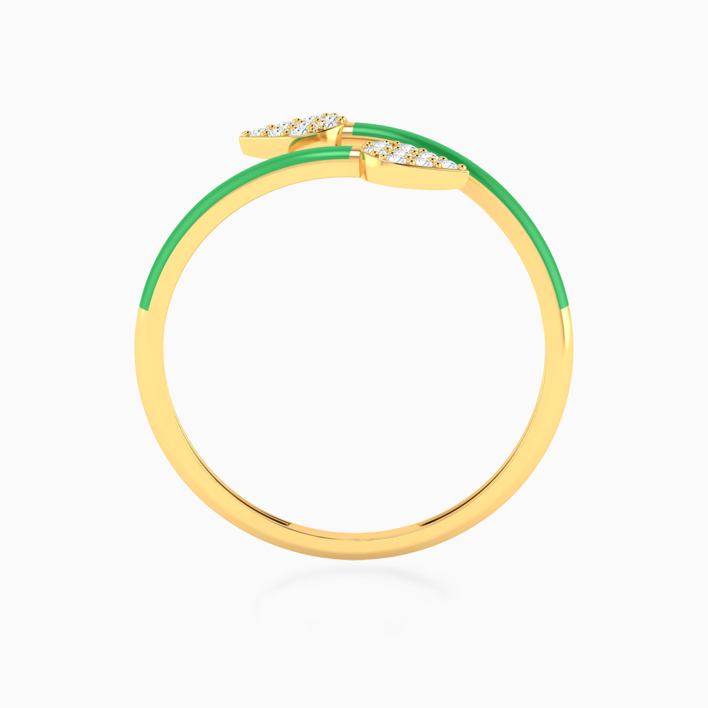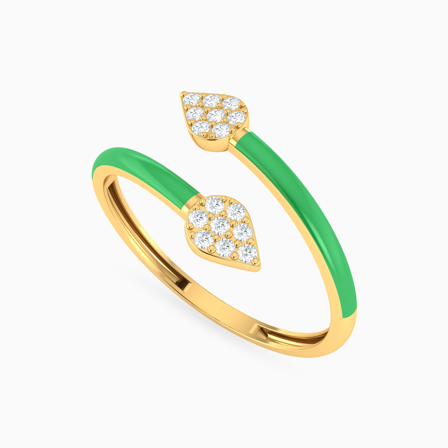 خاتم برأس مزدوجة ذهب شكل قطرة عيار 14 قيراط مطلي بالمينا ومزين بأحجار الزركون
