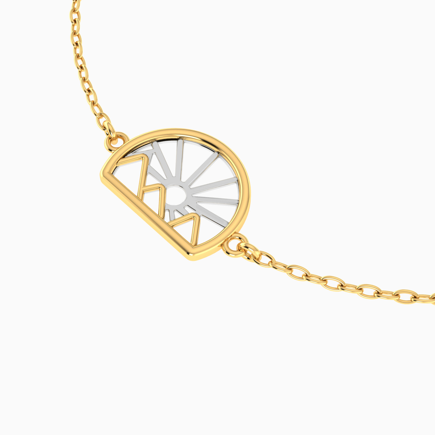 Rise with the light. This delicate Miss L’ bracelet features a golden sunrise design with white enamel rays, symbolizing hope, new beginnings, and gentle strength. A beautiful piece to wear as a daily reminder that every day holds a little magic waiting to shine.