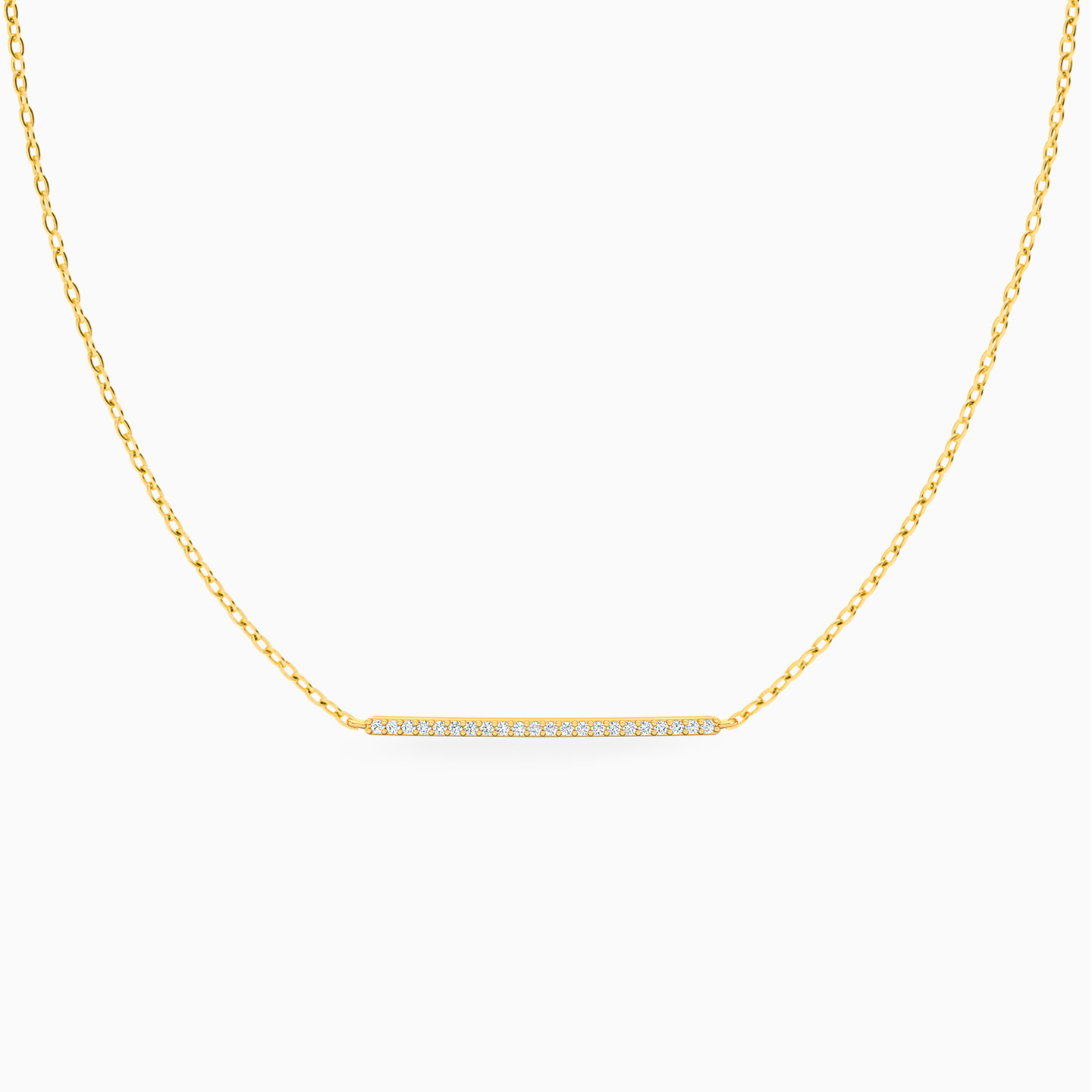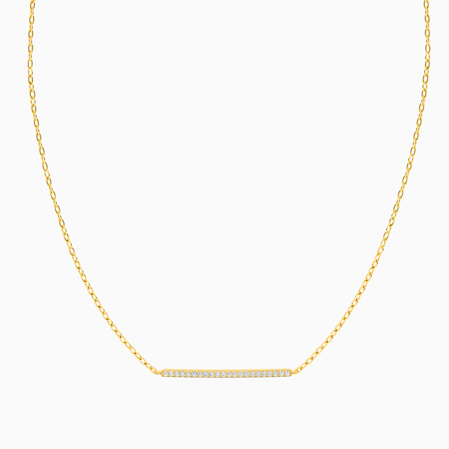 Elegance gets personified in this minimalist necklace from Miss L’. Cast in 18-karat yellow gold, it features a diamond studded line accent lending a subtle shine to your look. We think this would fit in just right with your day to evening wear.