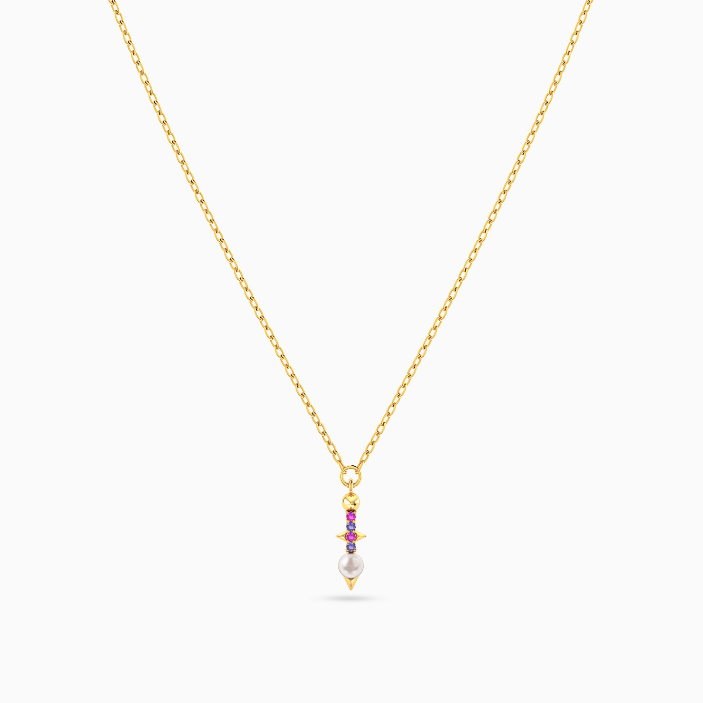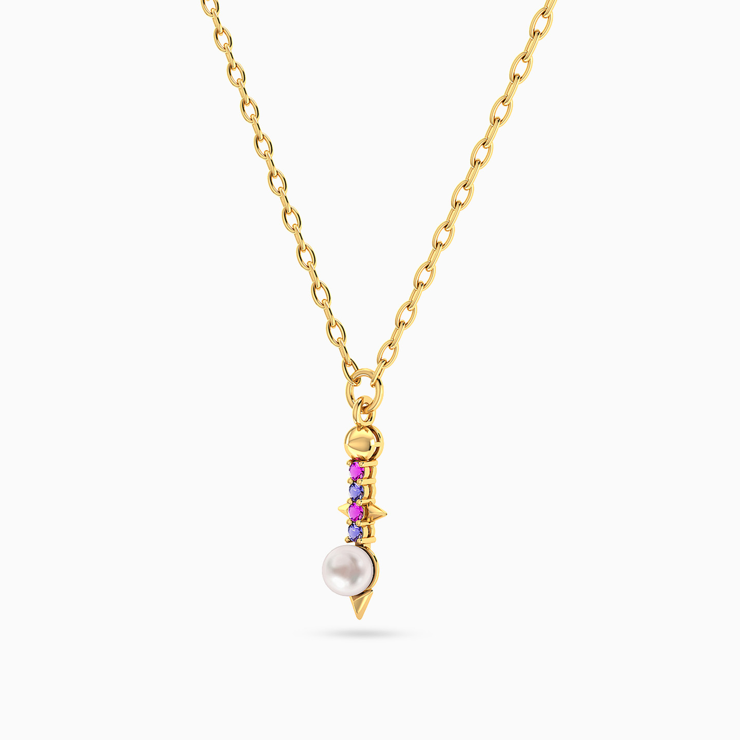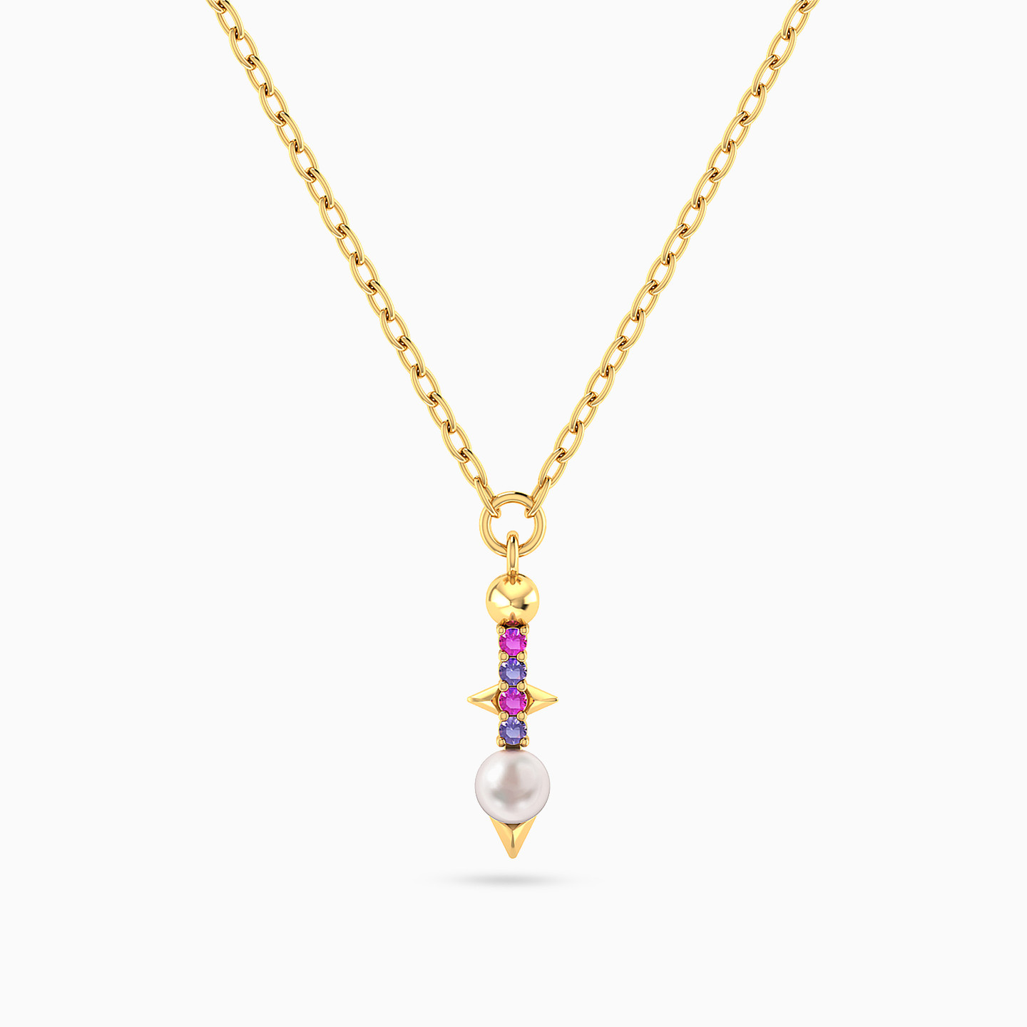 سلسلة شكل رمح ذهب عيار 18 قيراط مزينة بأحجار ملونة ولؤلؤ