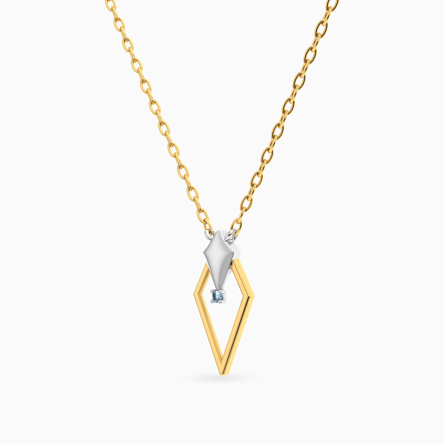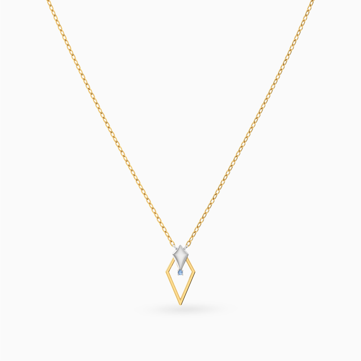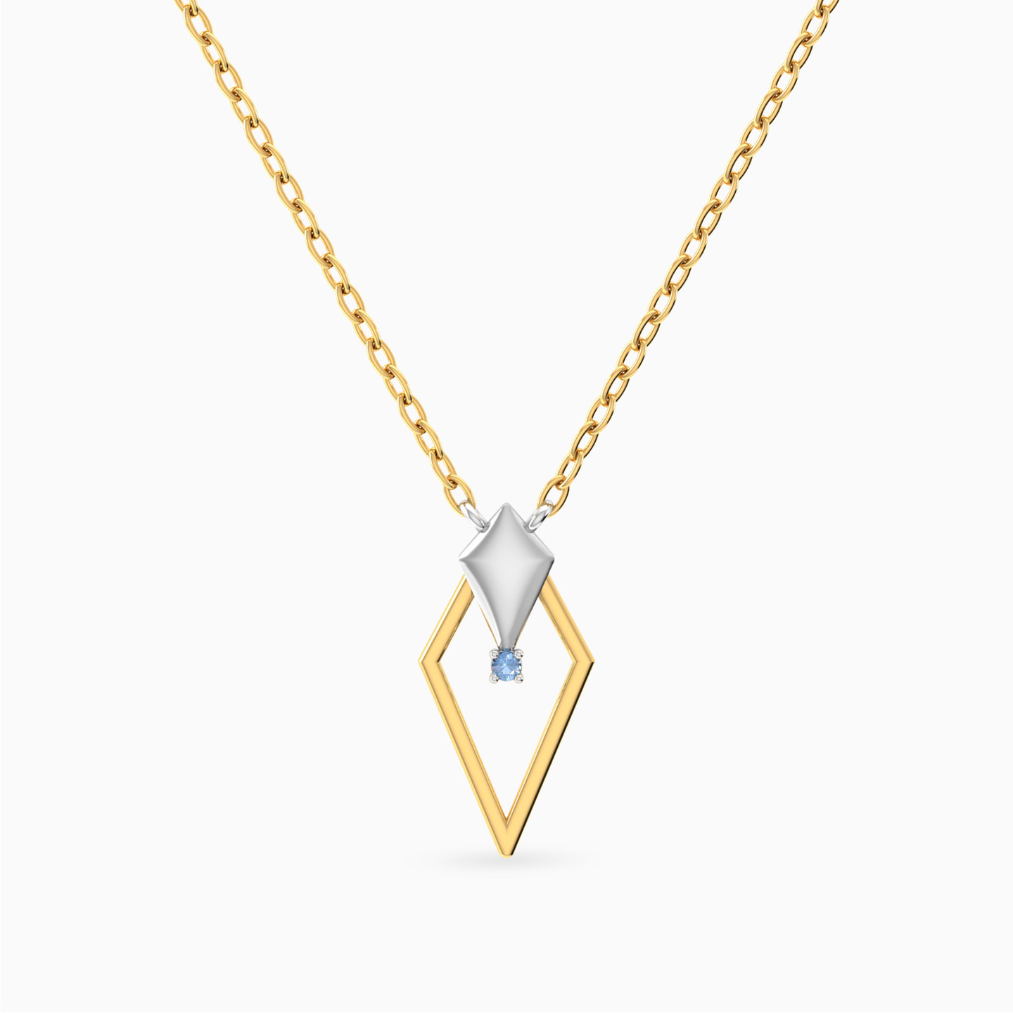 The spirit of strength in a refined form. This Miss L’ necklace from the Matrix Collection showcases a golden pendant shaped like the tip of a spear, accented with a sleek white gold detail and a tiny blue stone suspended within. A powerful yet graceful design, making it a meaningful gift for someone bold and elegant.