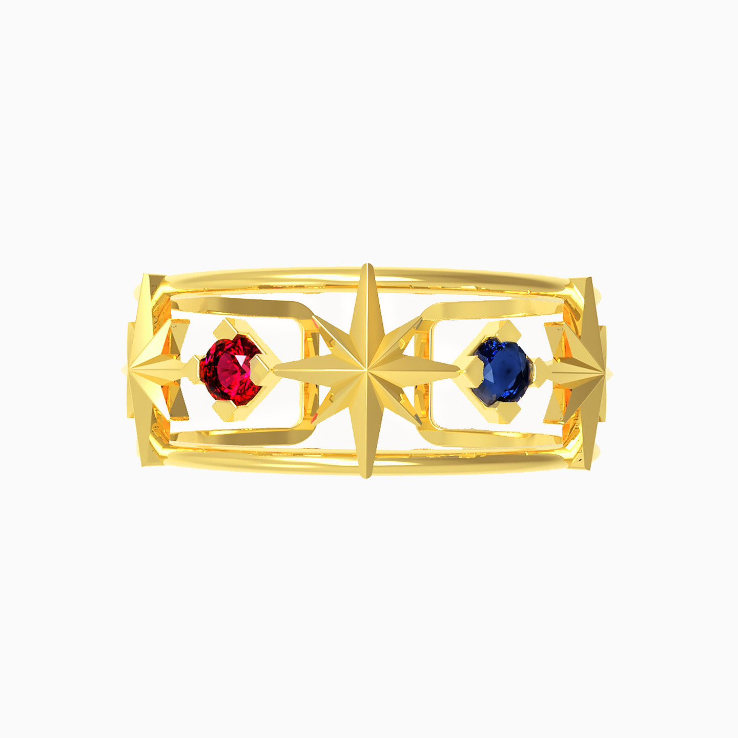 خاتم ذهب نجمة عيار 18 قيراط مزين بالأحجار الملونة