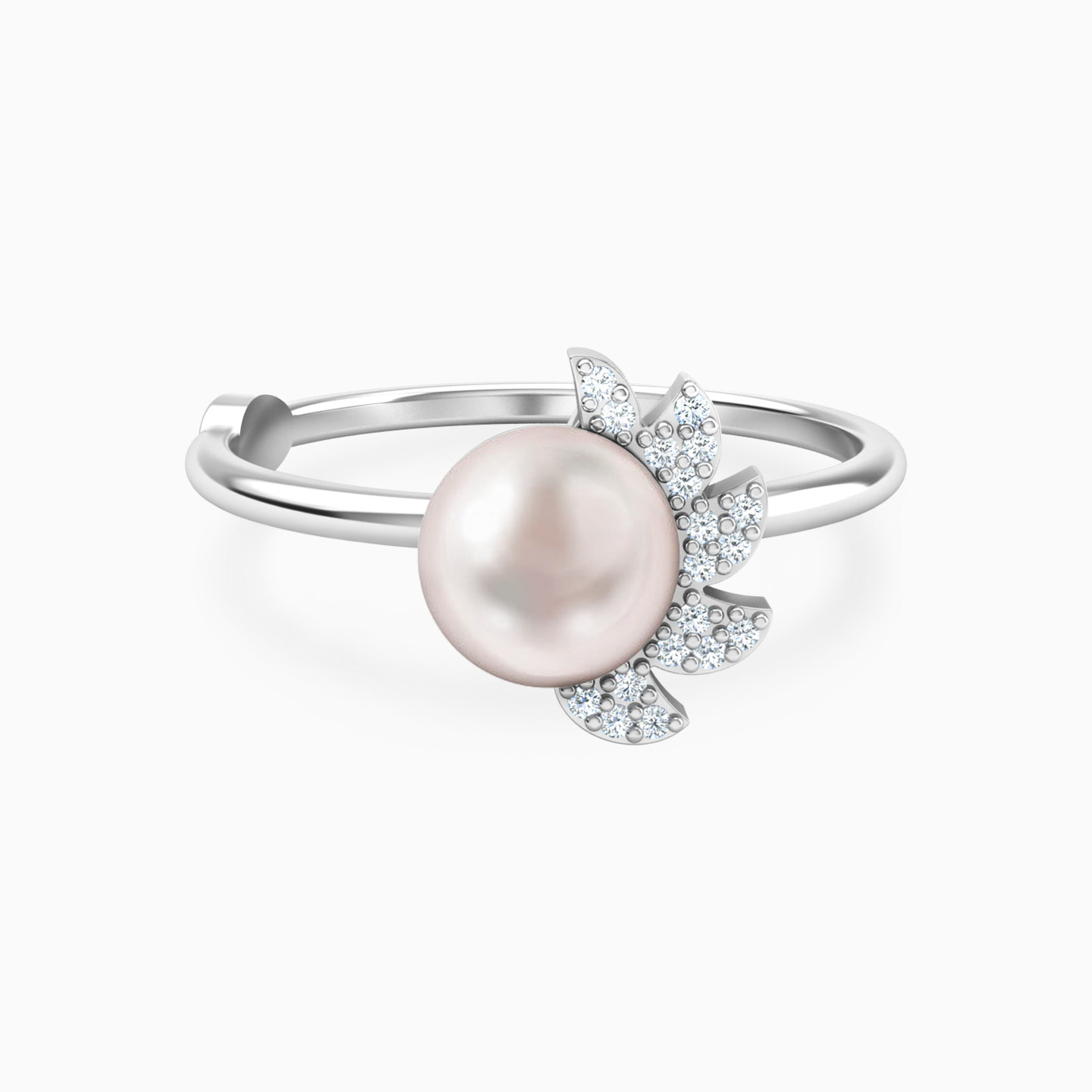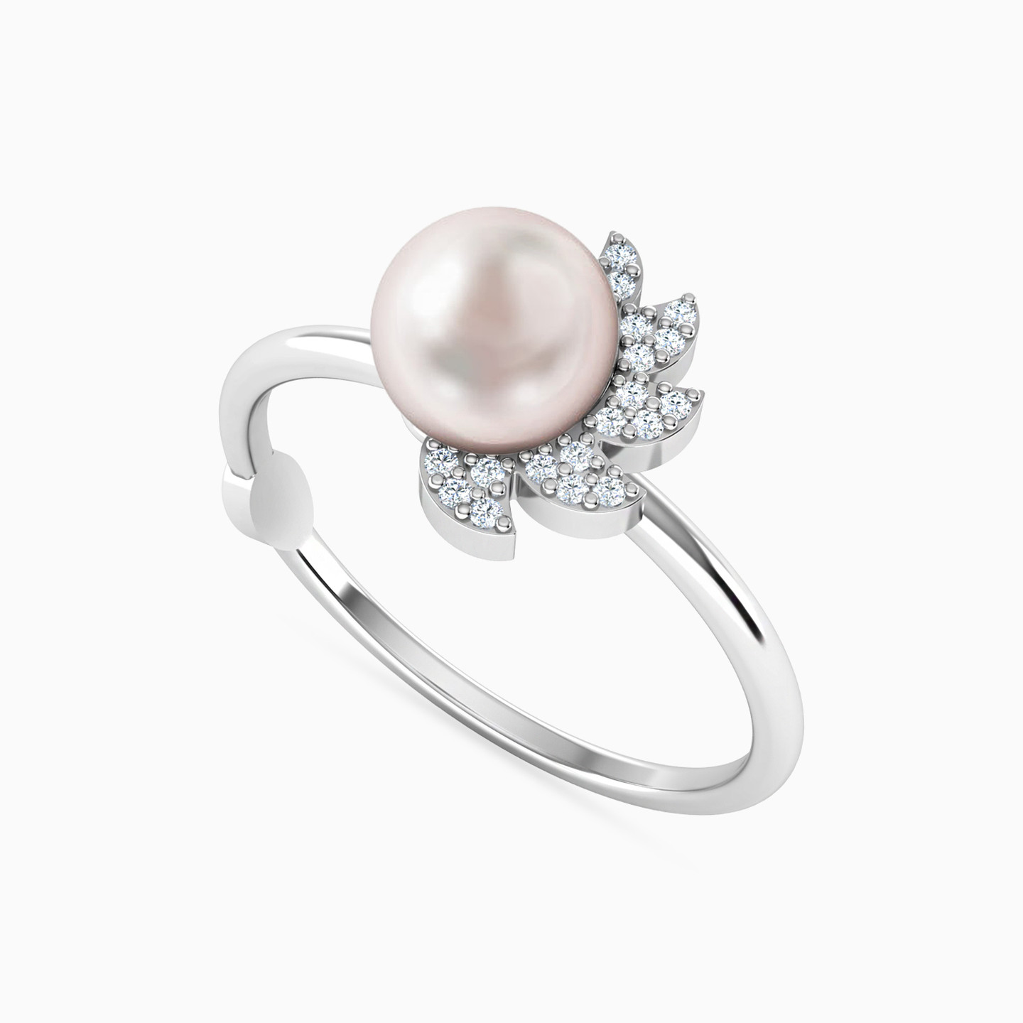 Add some sunshine to your favorite looks by wearing this stunning statement ring from Miss L. Elegant yet simple, this eye-catching 18-karat white gold ring features a gorgeous pearl sun center with brilliant cut diamond rays on one side. Perfect for everyday use, we love this piece paired with the matching earrings and pendant necklace for easy daytime and evening glam.