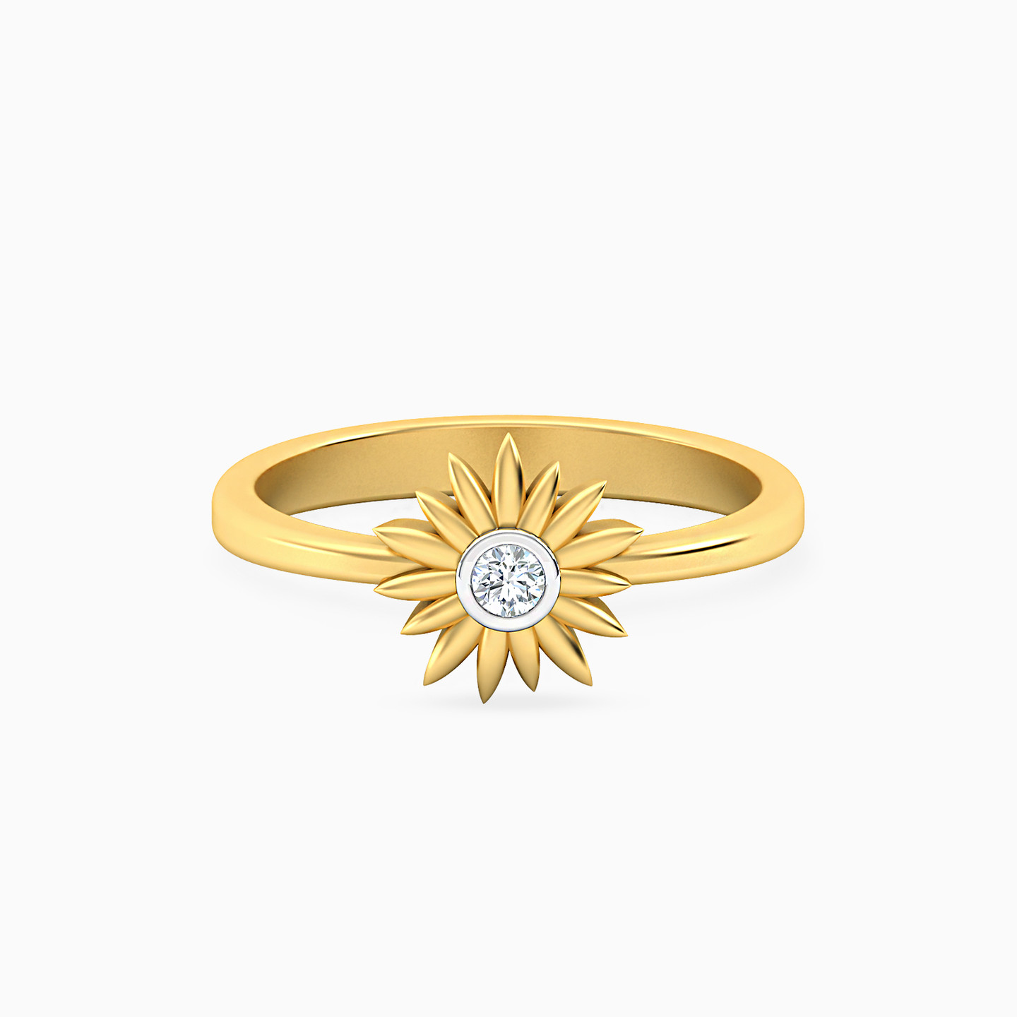 Glow up and shine with this sunflower ring from Miss L’. Featuring a diamond to the center, this classic piece lends an utterly feminine appeal to your look. We love the detailed work on the petals and the 18-karat yellow gold finish.