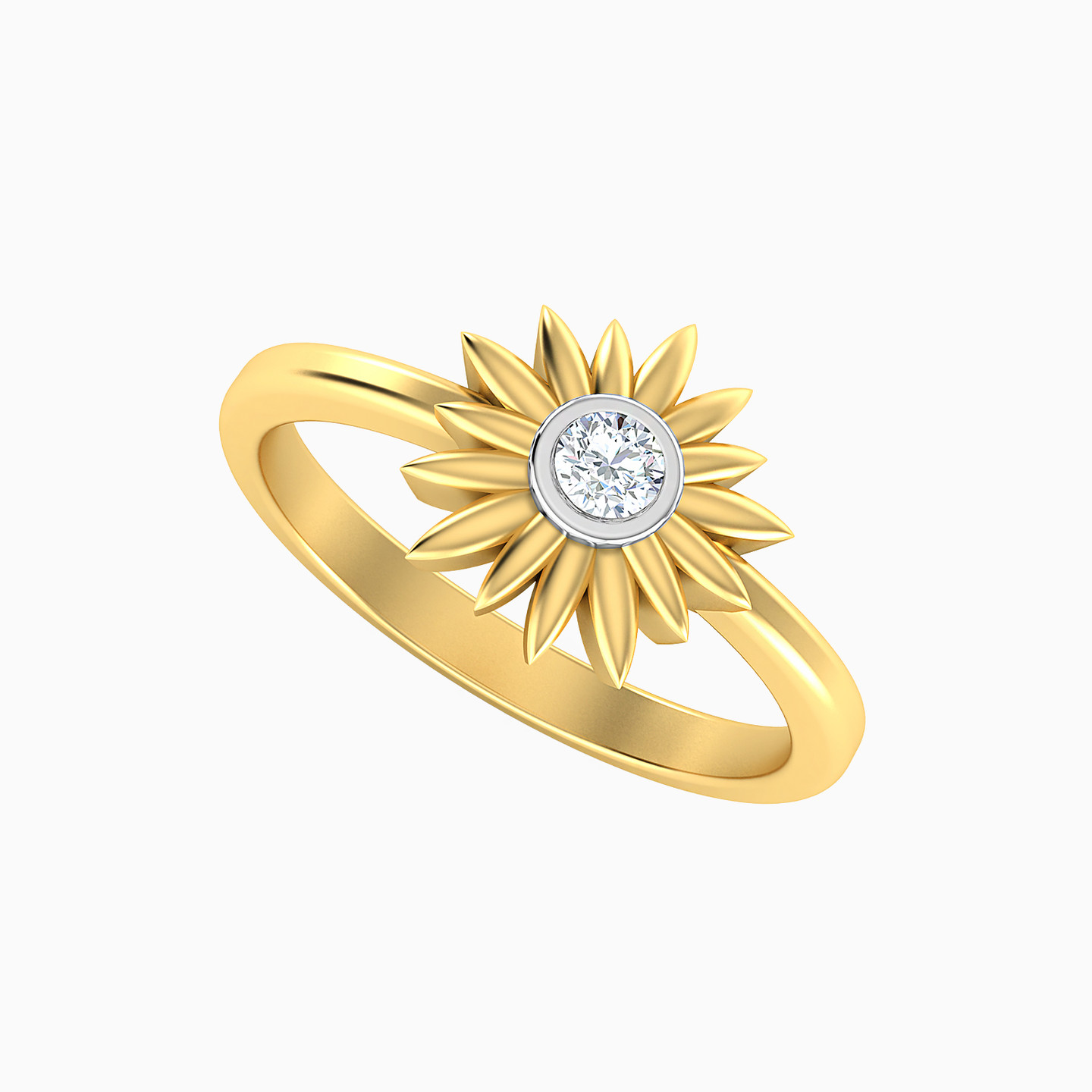 خاتم ذهب دوار الشمس عيار 18 قيراط مزين بالألماس