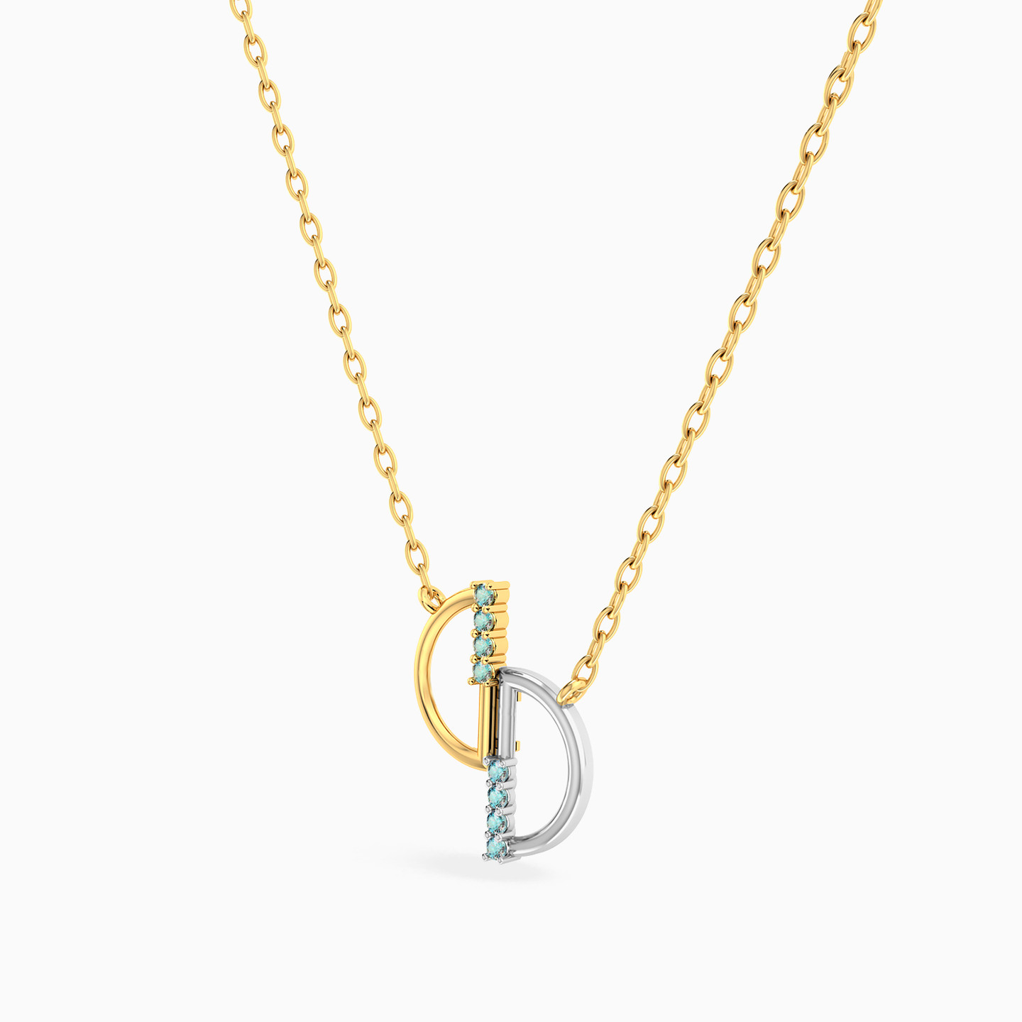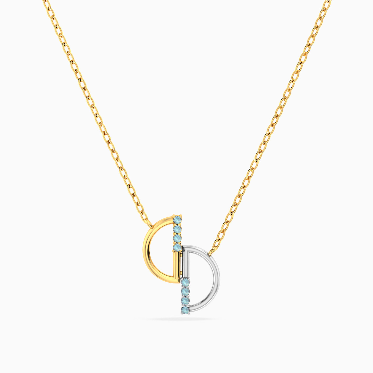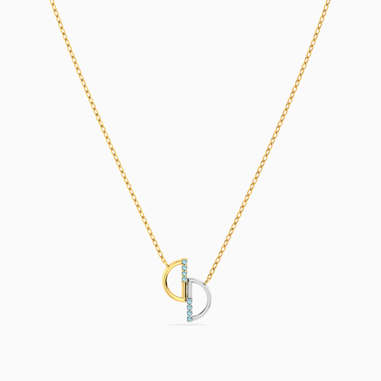 Balance in perfect symmetry. This Miss L’ necklace from the Matrix Collection features a pendant of two half-circles—one in gold, the other in white gold—joined at the center with a vertical line of shimmering blue stones. A modern and artistic design, making it a meaningful gift for someone who embodies harmony and elegance.