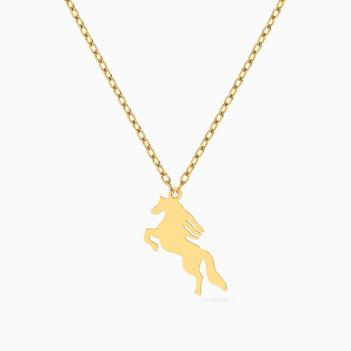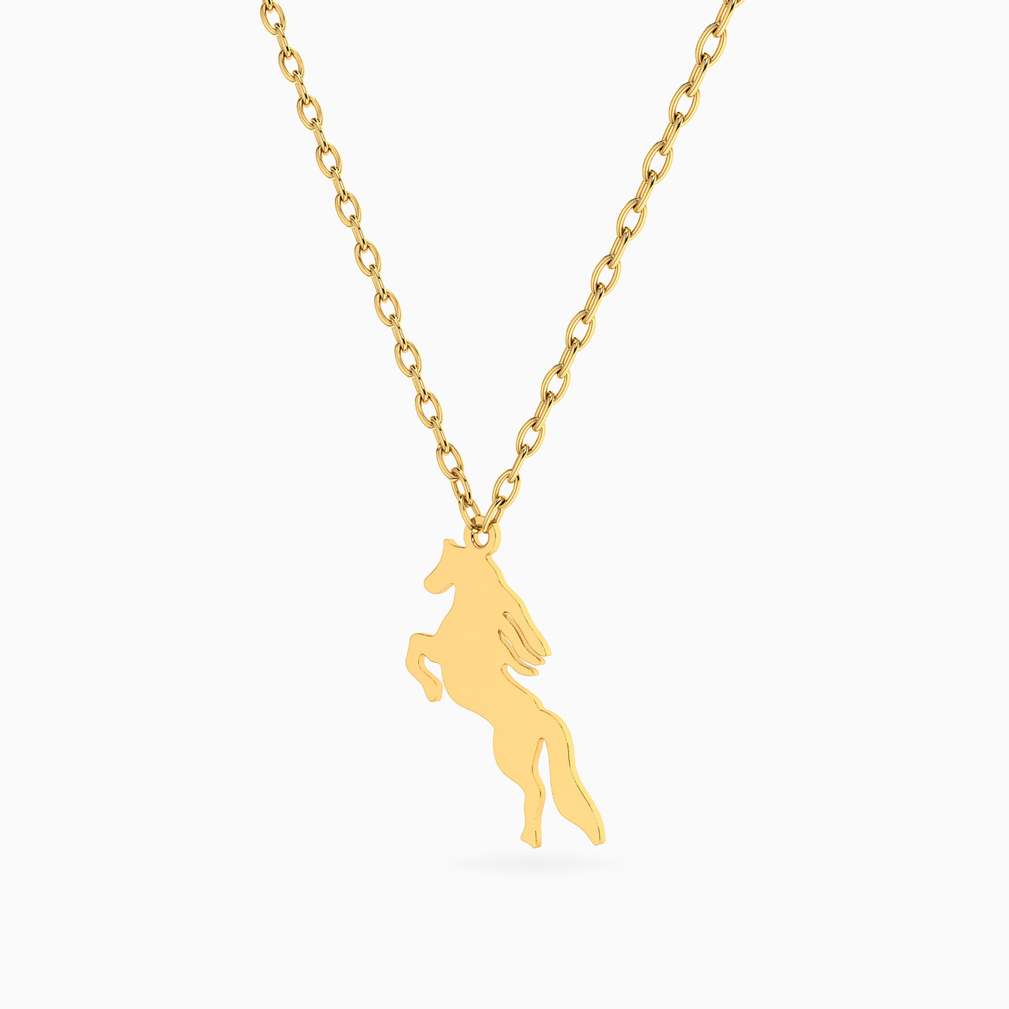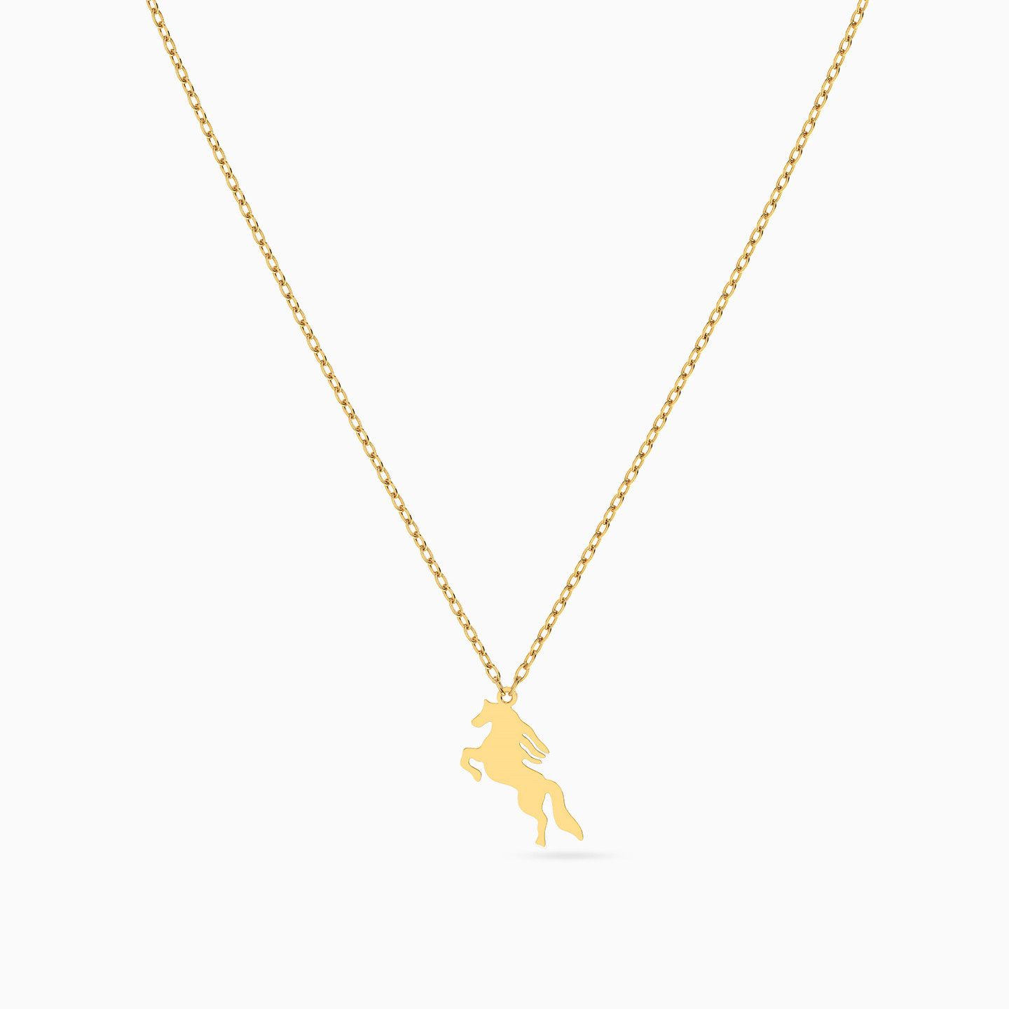 Embark on a journey of strength and prosperity with our 14-karat yellow gold pendant necklace from Miss L'. It features a classic gold chain that showcases a majestic horse pendant, representing the attainment of wealth and power. This necklace is designed to encapsulate the spirit of ambition and power, making it a meaningful adornment for those who strive for success.